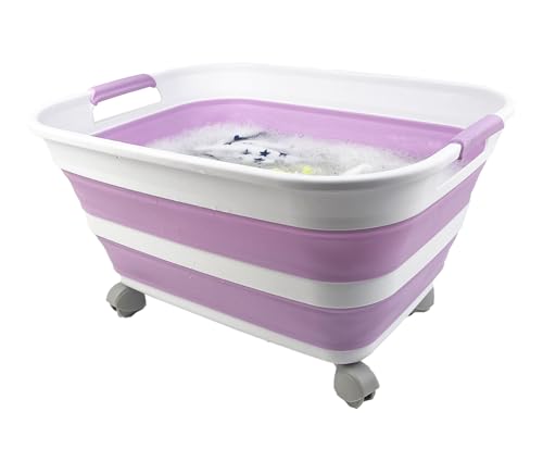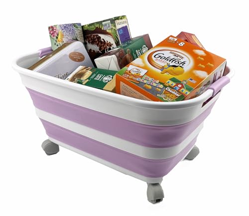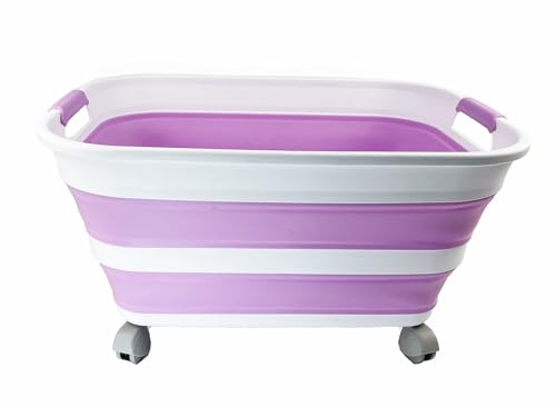 SAMMART 27L (7.1 Gallons) Collapsible Plastic Laundry Basket with wheels -Foldable Pop Up Storage Basket with handle