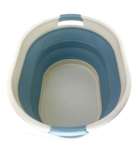 Details: **Collapsible TPE/PP Oval Tub **Brand: SAMMART **Material: TPE & PP **Expanded size: 21.2 x 15.9 x 10.1 inches **Collapsed size: 21.2 x 15.9 x 2.8 inches **Capacity: 28L/ 7.4Gallons