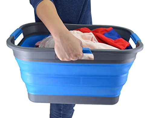 SAMMART 30L(8 gallon) Collapsible Plastic Laundry Basket - Foldable Pop Up Storage Container/Organizer - Portable Washing Tub - Space Saving Hamper/Basket - Water Capacity 24L(6.3 gallon)