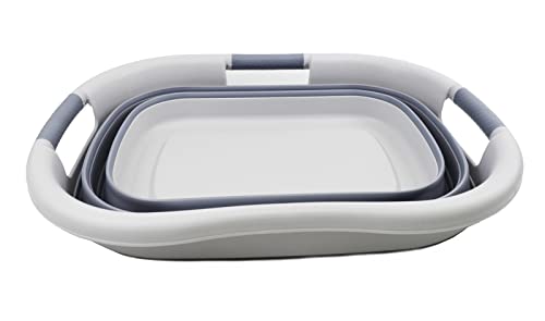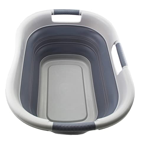 Details: **Collapsible TPE/PP Oval Tub **Brand: SAMMART **Material: TPE & PP **Expanded size: 21.2 x 16.1 x 10.2 (h) inches **Collapsed size: 21.2 x 16.1 x 3 (h) inches