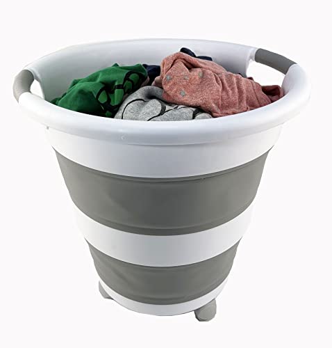 SAMMART 34L (8.9 Gallons) Collapsible Plastic Laundry Basket with Wheels - Foldable Pop Up Storage Container/Organizer with wheels
