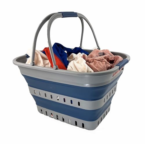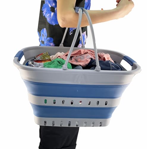 SAMMART 35L (9.25 Gallons) Collapsible Laundry Basket with Handles - Portable Outdoor Picnic Basket/Crater - Foldable Shopping Bag - Space Saving Storage Container