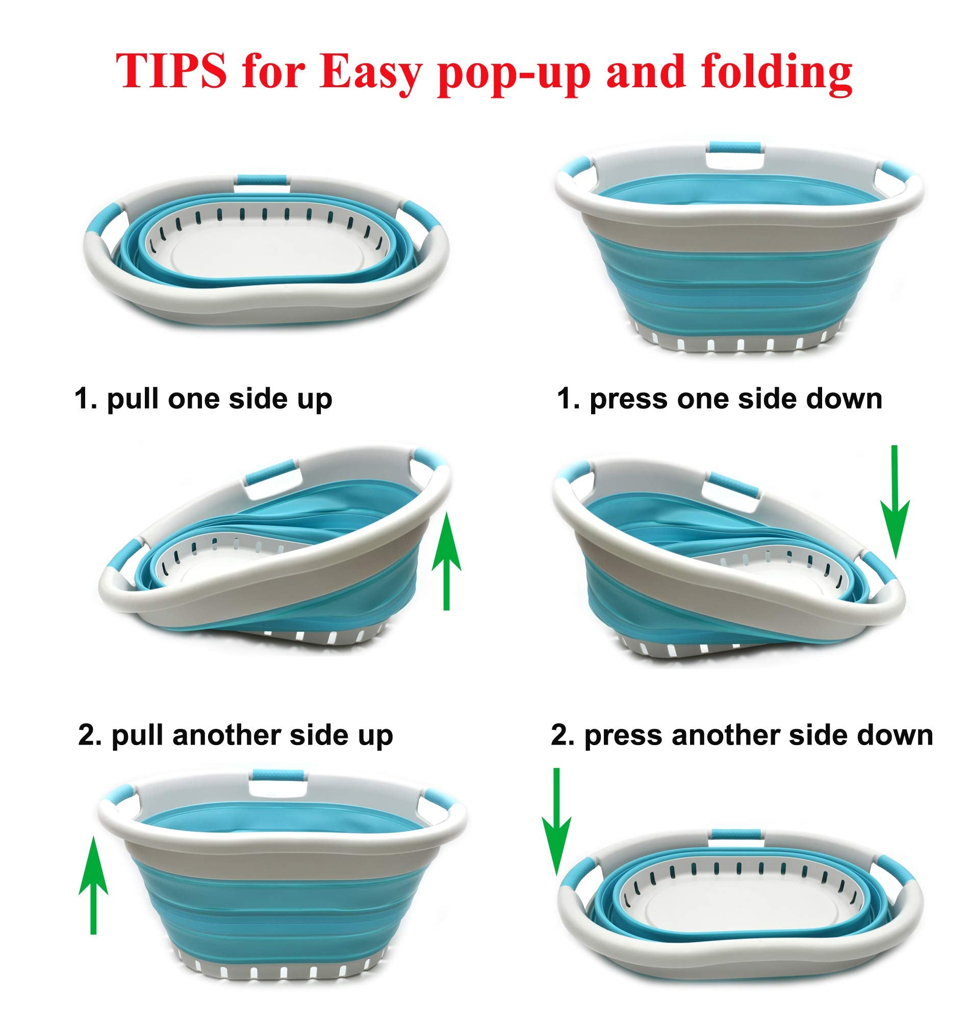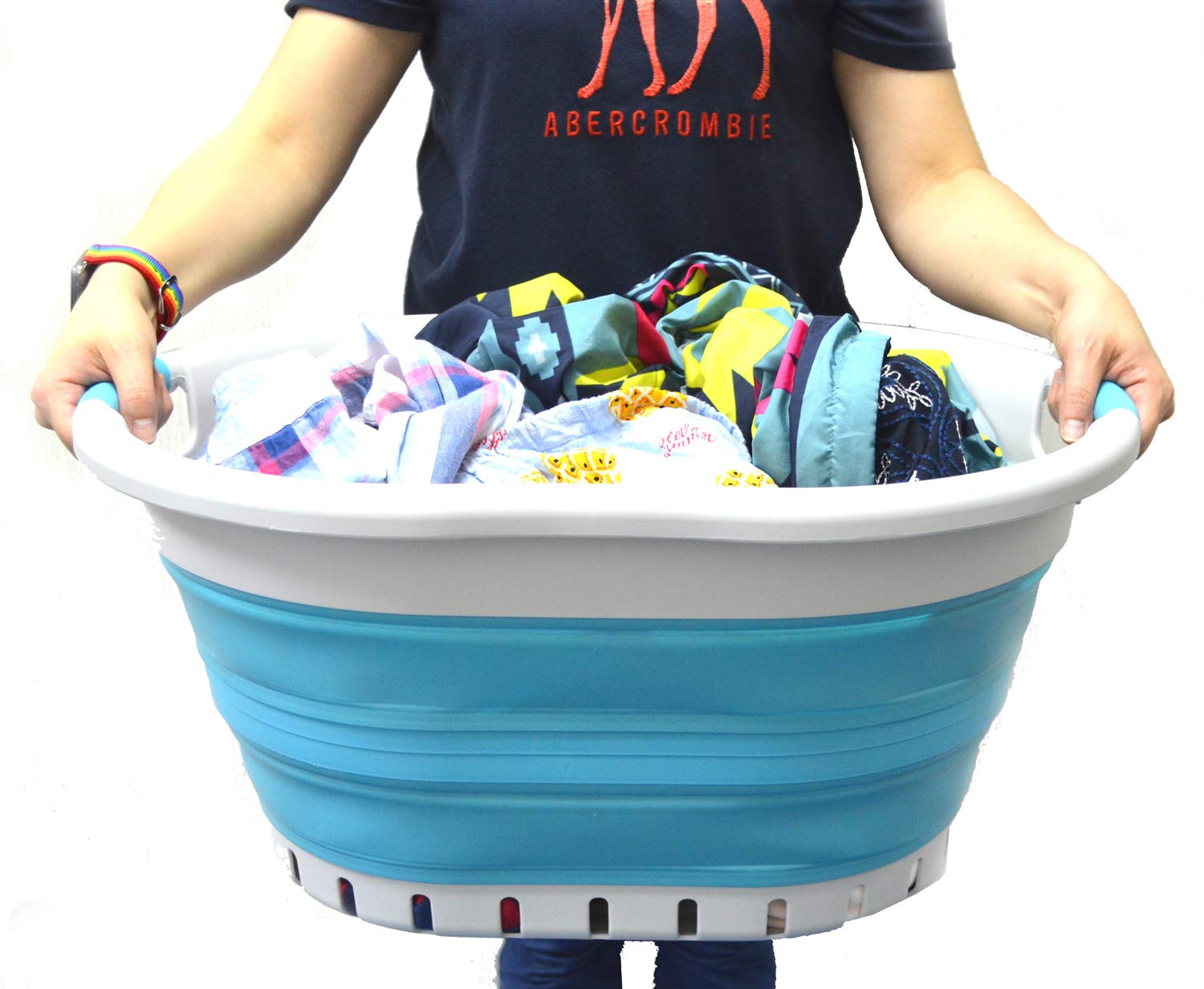 Details: **Collapsible TPE/PP Tub/Laundry Basket **Brand: SAMMART **Material: TPE & PP **Expanded size: 23 x 17.3 x 11 inches **Collapsed size: 23 x 17.3 x 3.1 inches