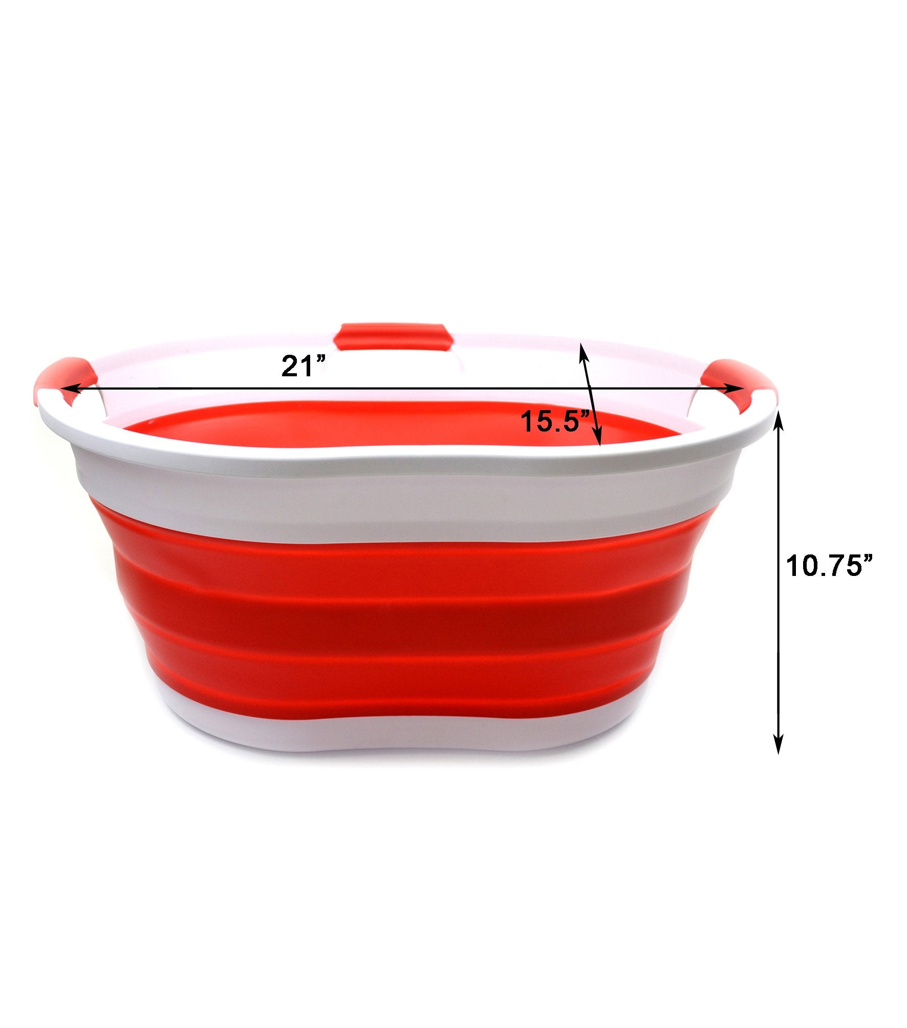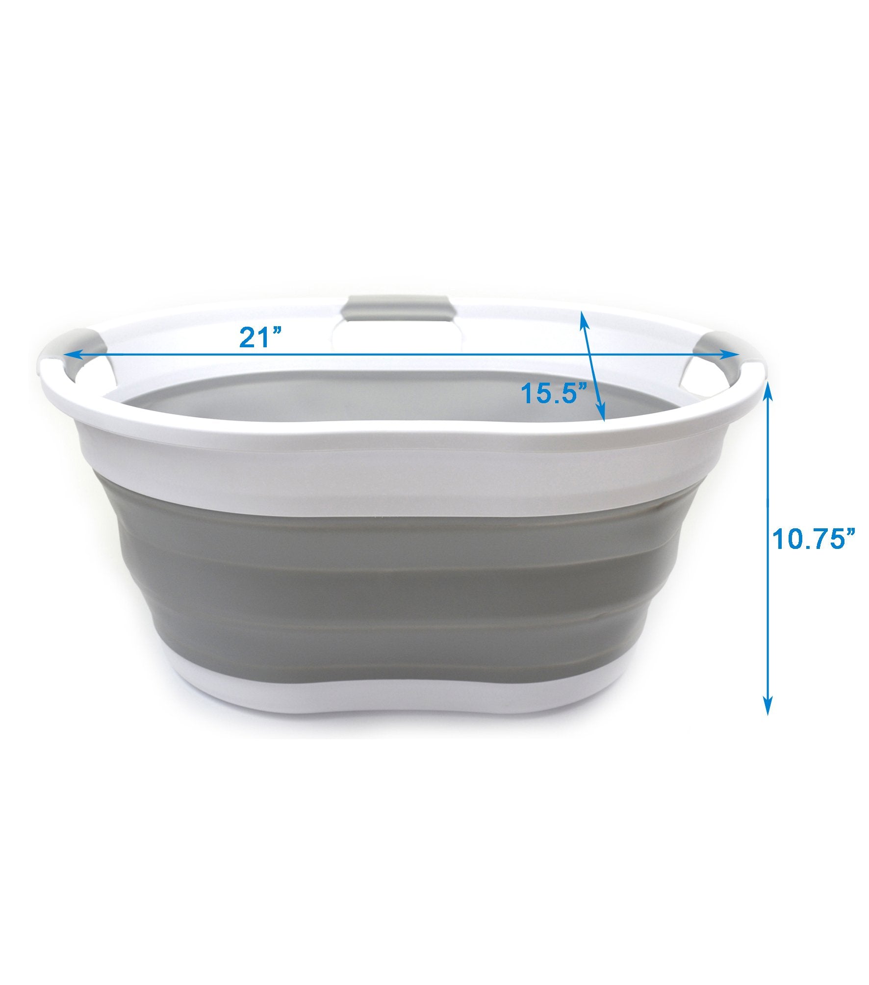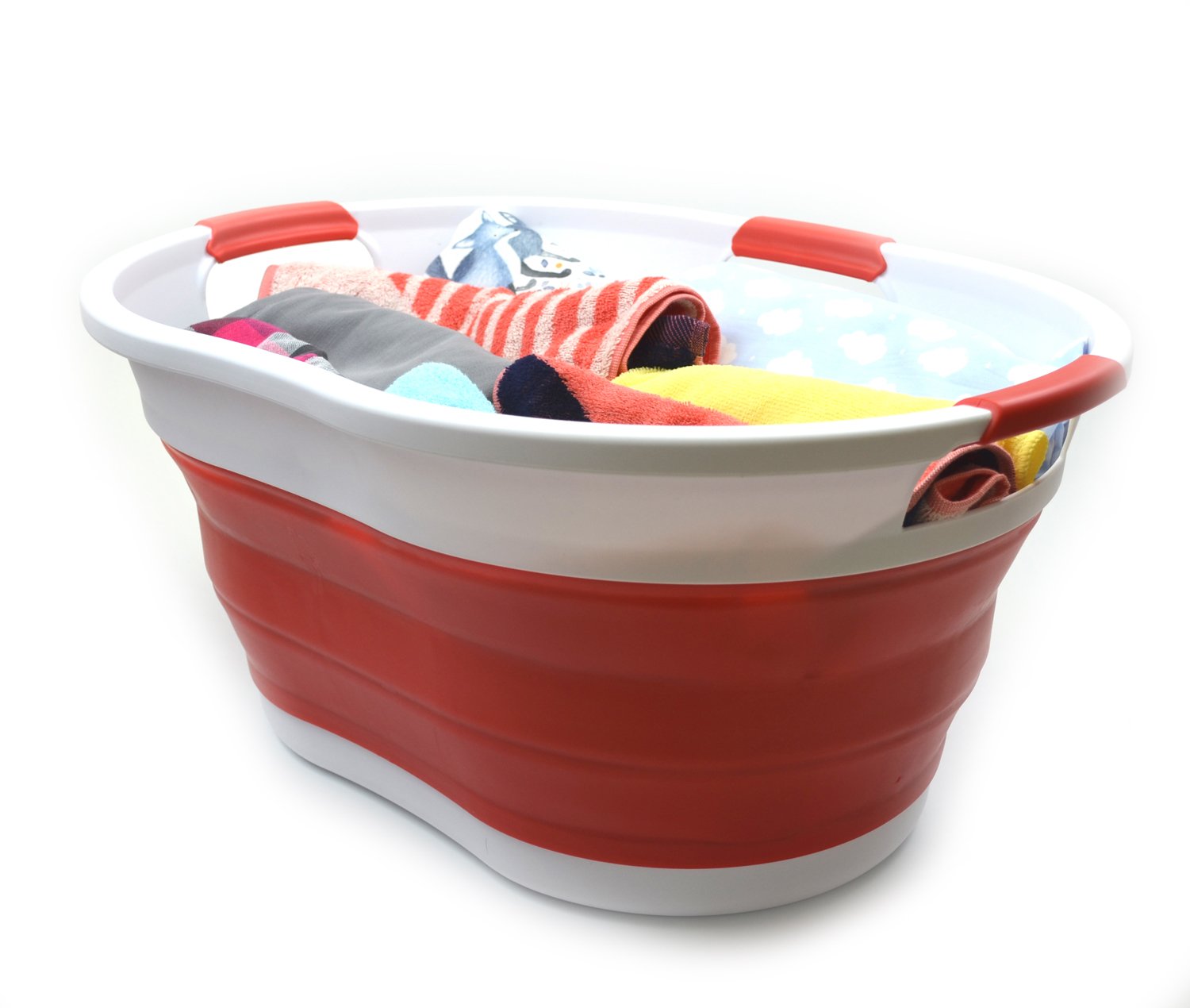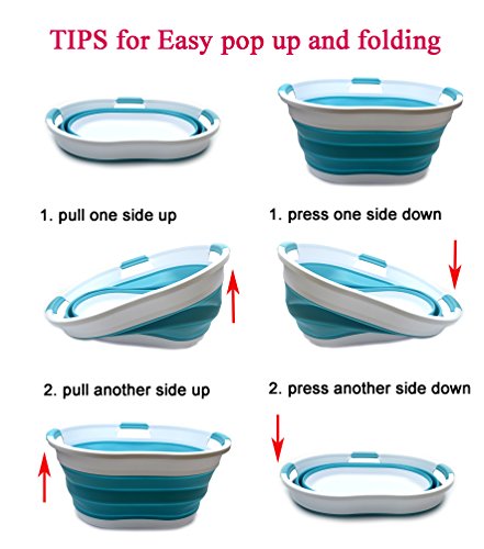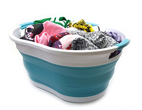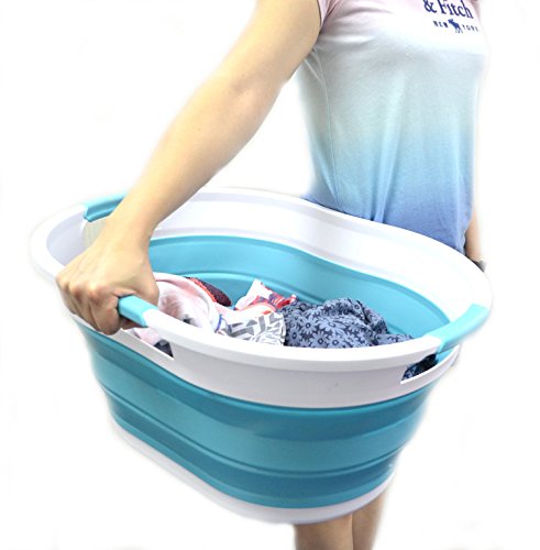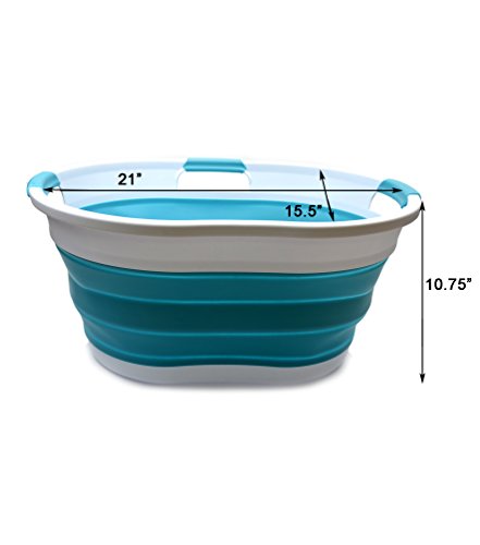 Details: **Collapsible TPE/PP Tub/Laundry Basket **Brand: SAMMART **Material: TPE & PP **Expanded size: 22.8 x 16.9 x 10.8 inches **Collapsed size: 22.8 x 16.9 x 3.4 inches **Full capacity : 36L (9.5 Gallon) **Water capacity: 27L (7.1 Gallon)