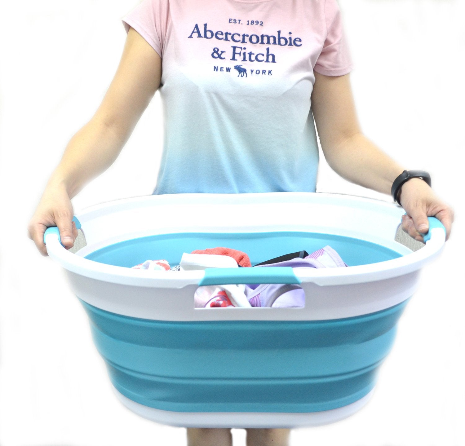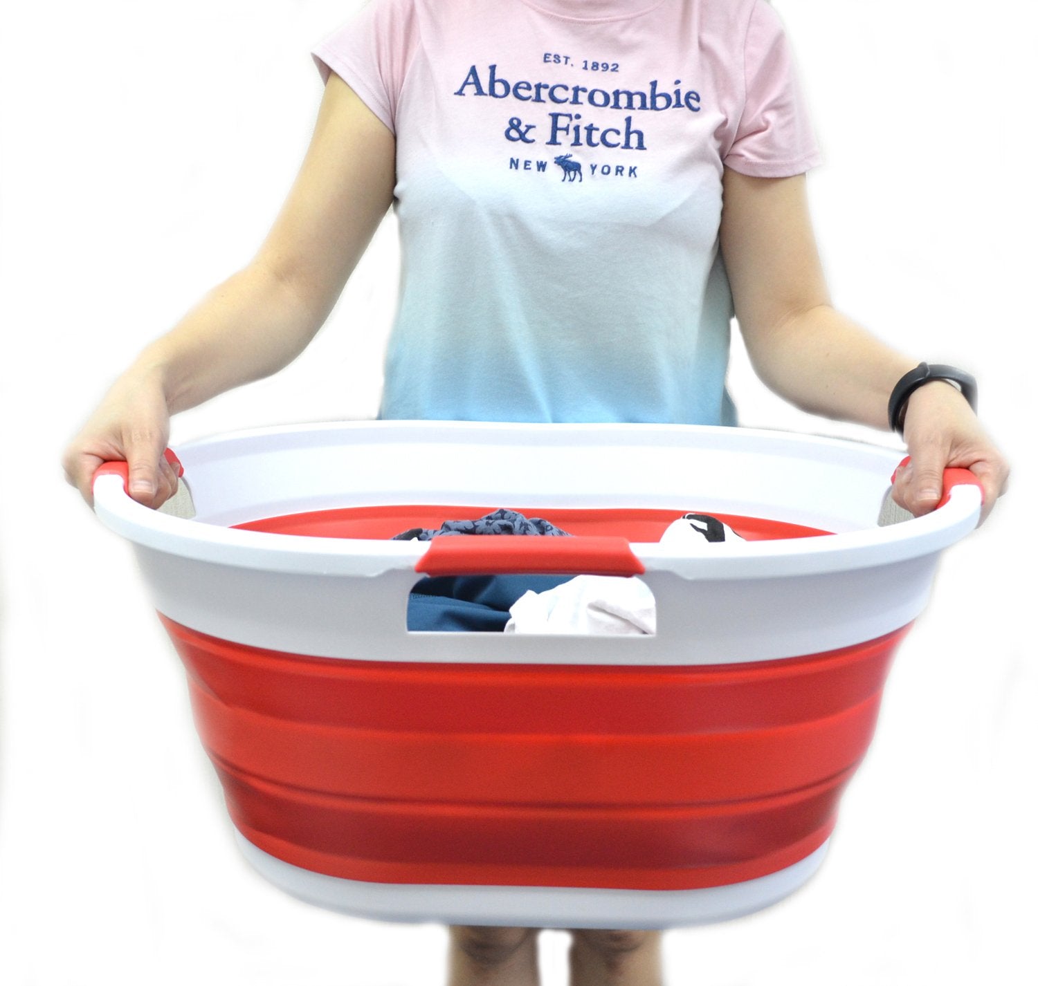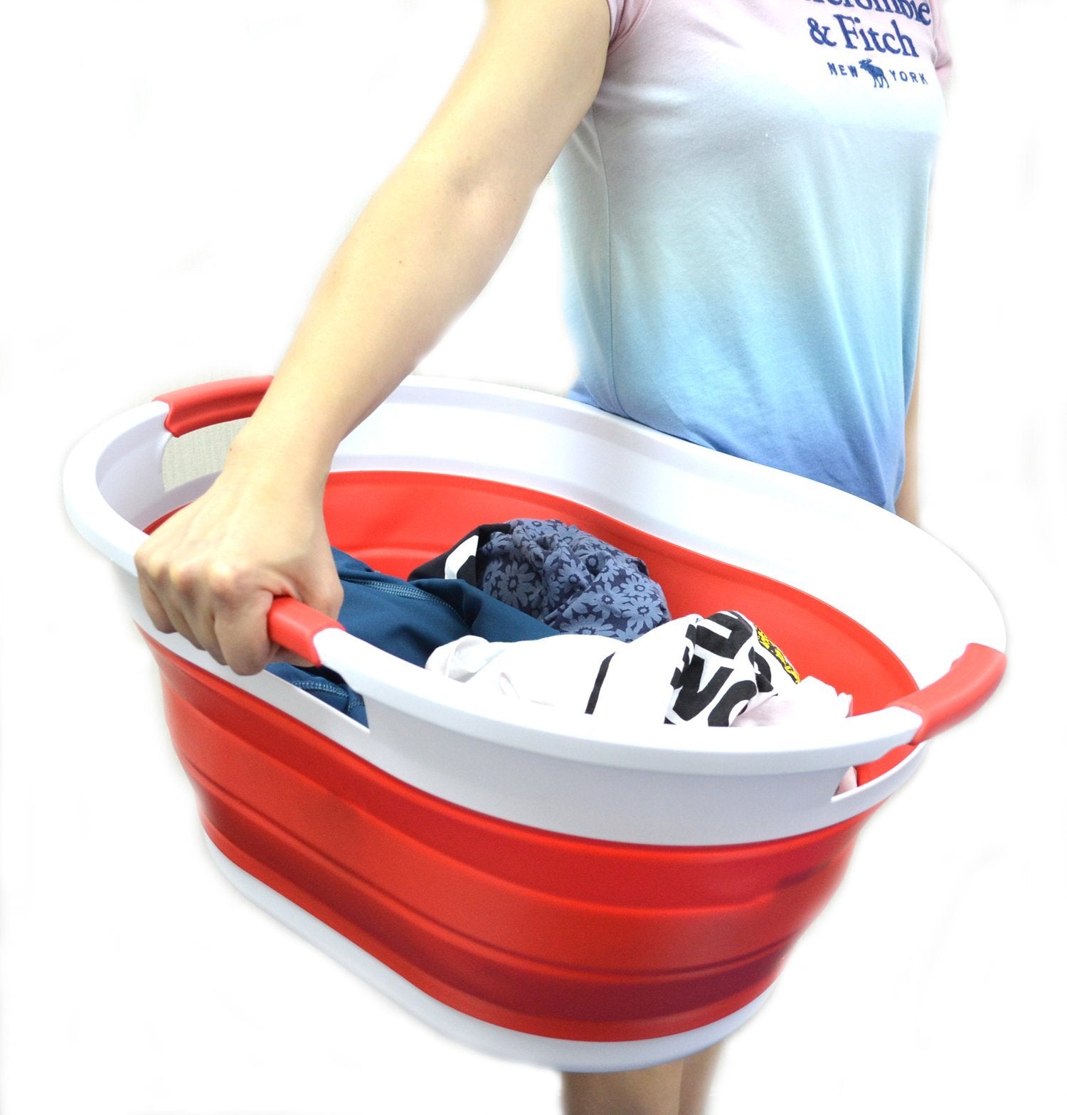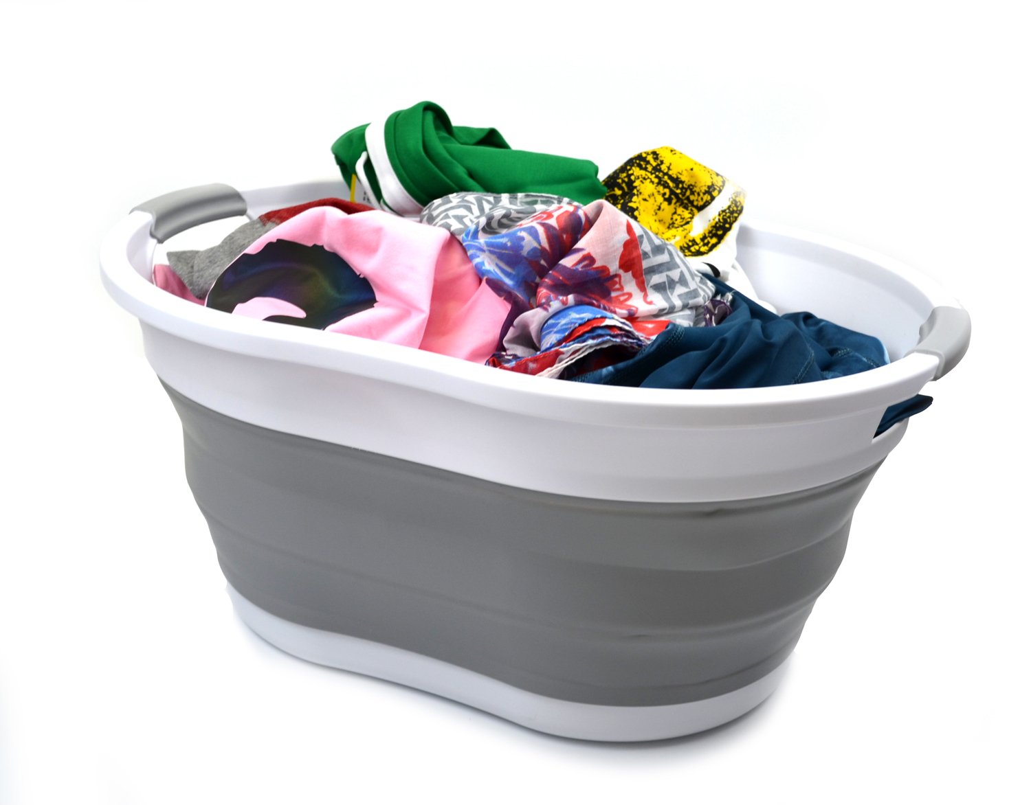 Details: **Collapsible TPE/PP Tub/Laundry Basket **Brand: SAMMART **Material: TPE & PP **Expanded size: 22.8 x 16.9 x 10.8 inches **Collapsed size: 22.8 x 16.9 x 3.4 inches **Full capacity : 36L (9.5 Gallon) **Water capacity: 27L (7.1 Gallon)