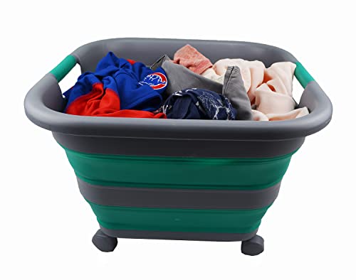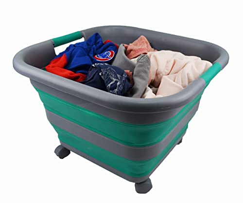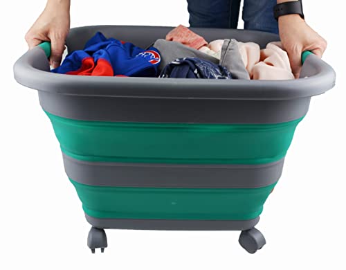 SAMMART 39L (10.3 Gallons) Collapsible Plastic Laundry Basket with Wheels - Foldable Pop Up Storage Container / Organizer with wheels - Portable Washing Tub - Space Saving Storage Box / Basket with wheels