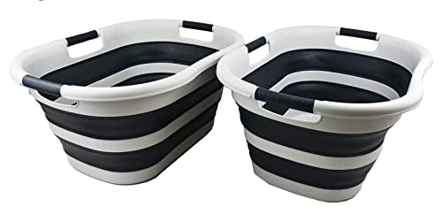 SAMMART 40L (10.5 gallon) Collapsible Plastic Laundry Basket - Foldable Pop Up Storage Container/Organizer - Portable Washing Tub - Space Saving Hamper/Basket
