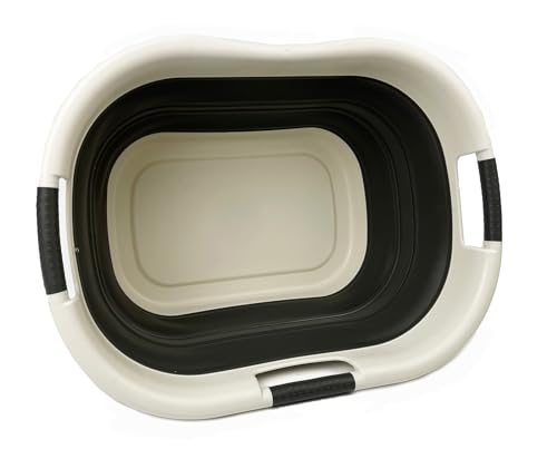 Details: **Collapsible TPE/PP Oval Tub **Brand: SAMMART **Material: TPE & PP **Expanded size: 23.5 x 17.7 x 11 (h) inches **Collapsed size: 23.5 x 17.7 x 3 (h) inches