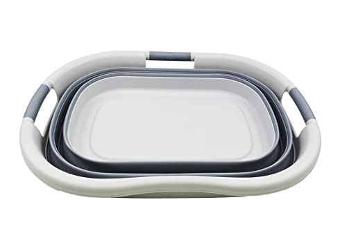 Details: **Collapsible TPE/PP Oval Tub **Brand: SAMMART **Material: TPE & PP **Expanded size: 23.5 x 17.7 x 11 (h) inches **Collapsed size: 23.5 x 17.7 x 3 (h) inches