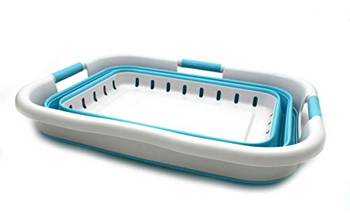 - BPA Free. Comfort grip handles for easy carry. User friendly by simply pop-up to open when using and collapses to flat for space saving