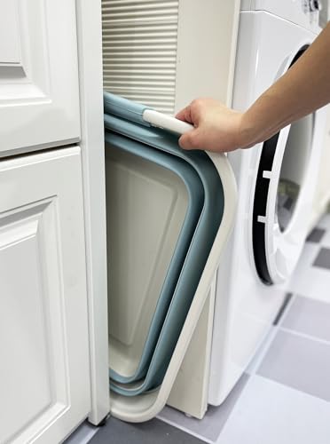 Details: **Collapsible TPE/PP Laundry Basket/Tub **Brand: SAMMART **Material: TPE & PP **Expanded size: 22.7 x 17.5 x 10.4(h) inches **Collapsed size: 22.7 x 17.5 x 2.7(h) inches **Capacity: 42L/ 11.09 Gallons