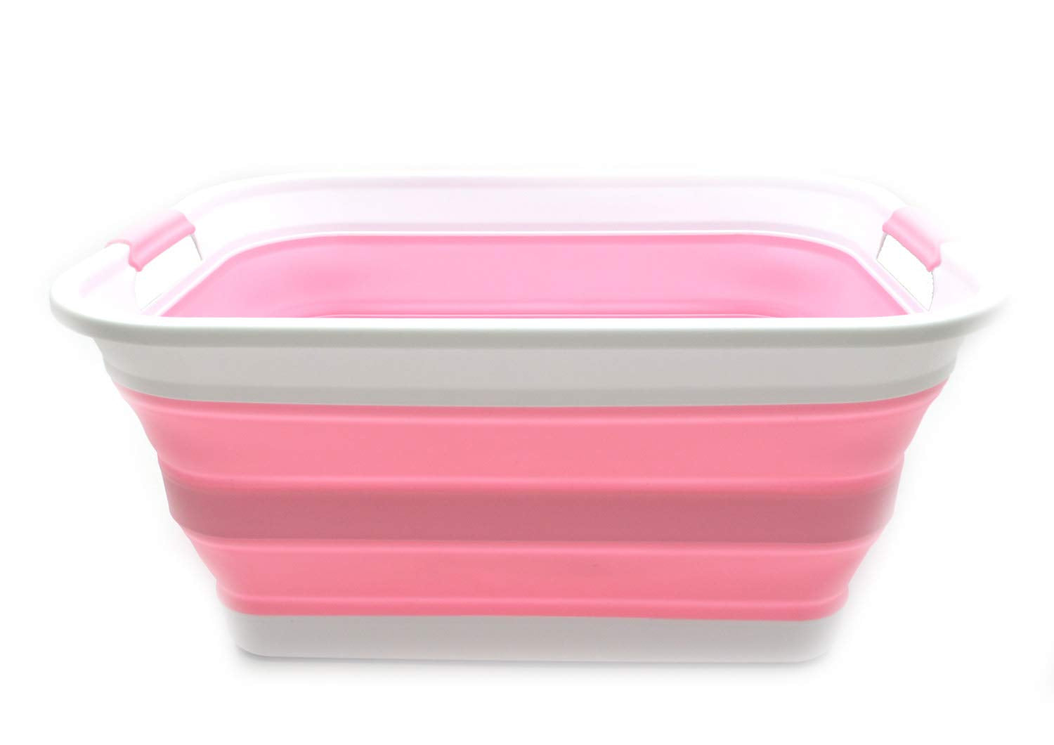 - BPA Free. Comfort grip handles for easy carry. User friendly by simply pop-up to open when using and collapses to flat for space saving
