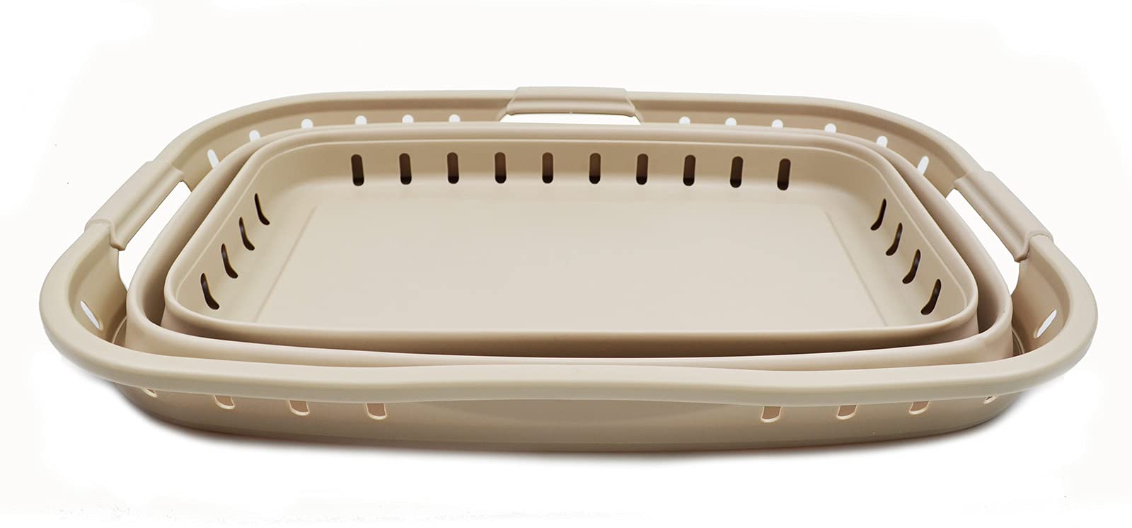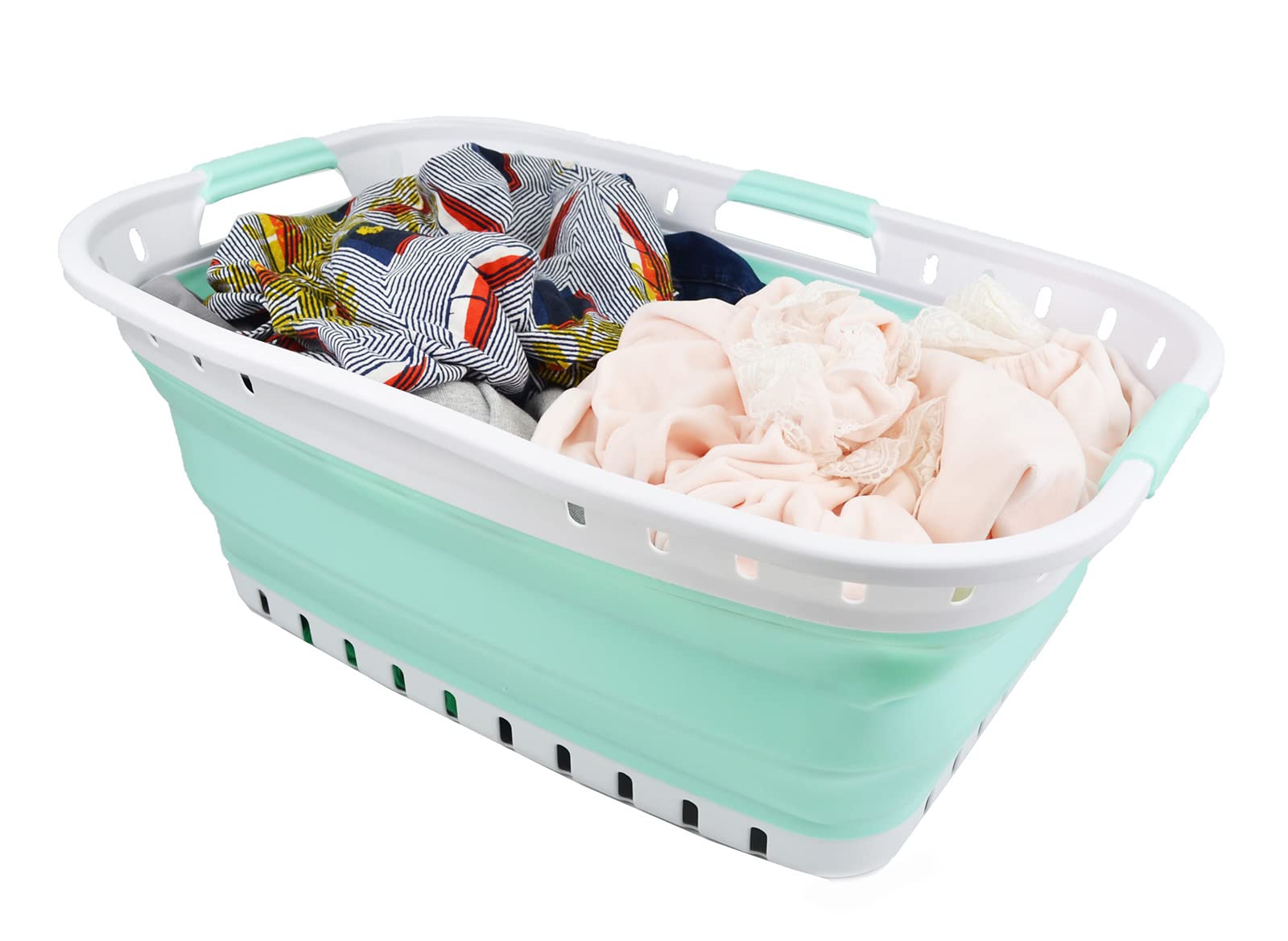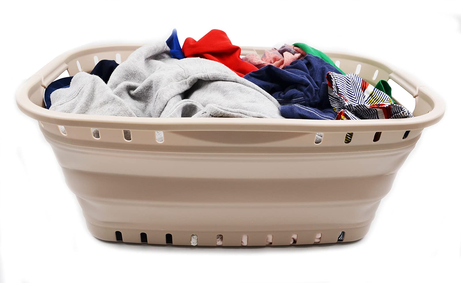 Details: **Collapsible TPE/PP Laundry Basket **Brand: SAMMART **Material: TPE & PP **Expanded size: 25.4 x 17.3 x 10.2(h) inches **Collapsed size: 25.4 x 17.3 x 2.7(h) inches **Full Capacity: 44L (11.62 gallon)