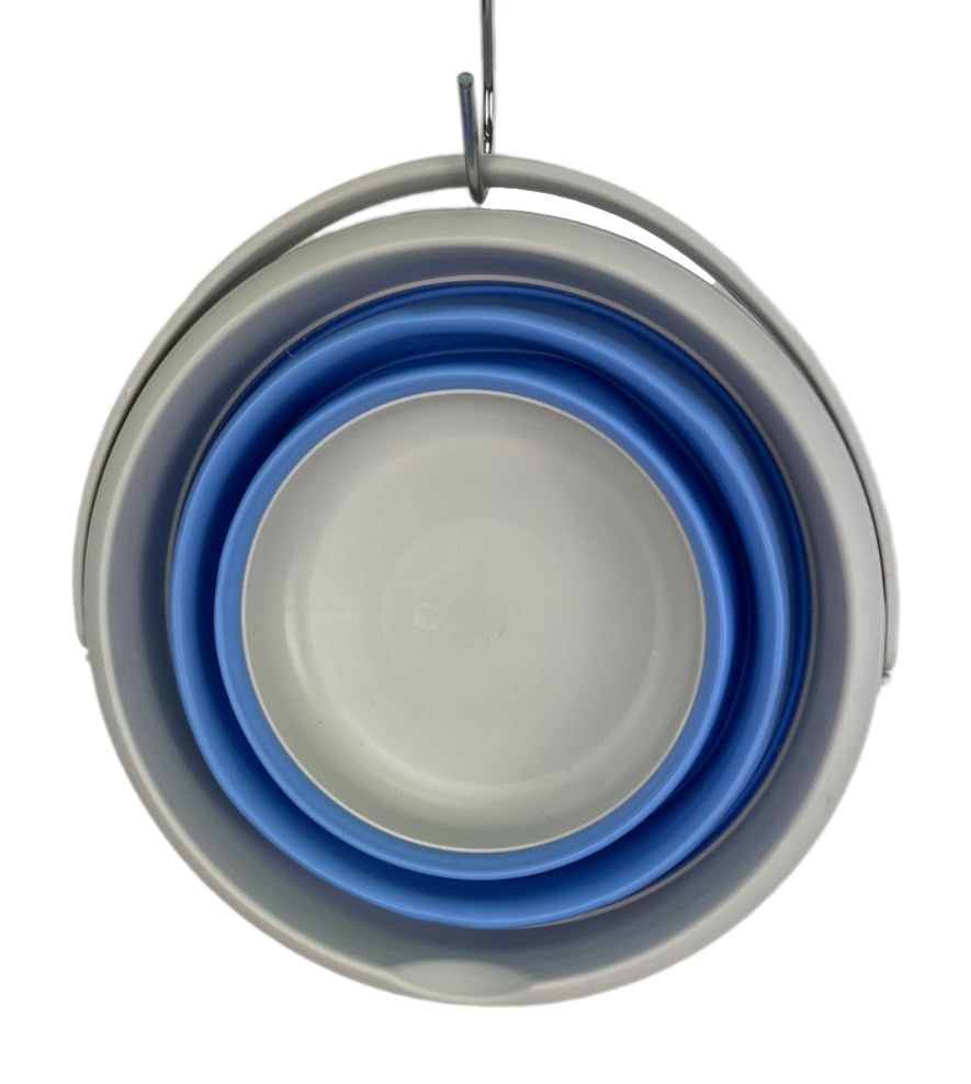 Details: "**Collapsible TPE/PP Bucket **Brand: SAMMART **Material: TPE & PP **Expanded size: 10 (dia) x 7.9 (h) inches **Collapsed size: 10 (dia) x 2 (h) inches **Capacity: 5.5L (1.4 Gallon) "