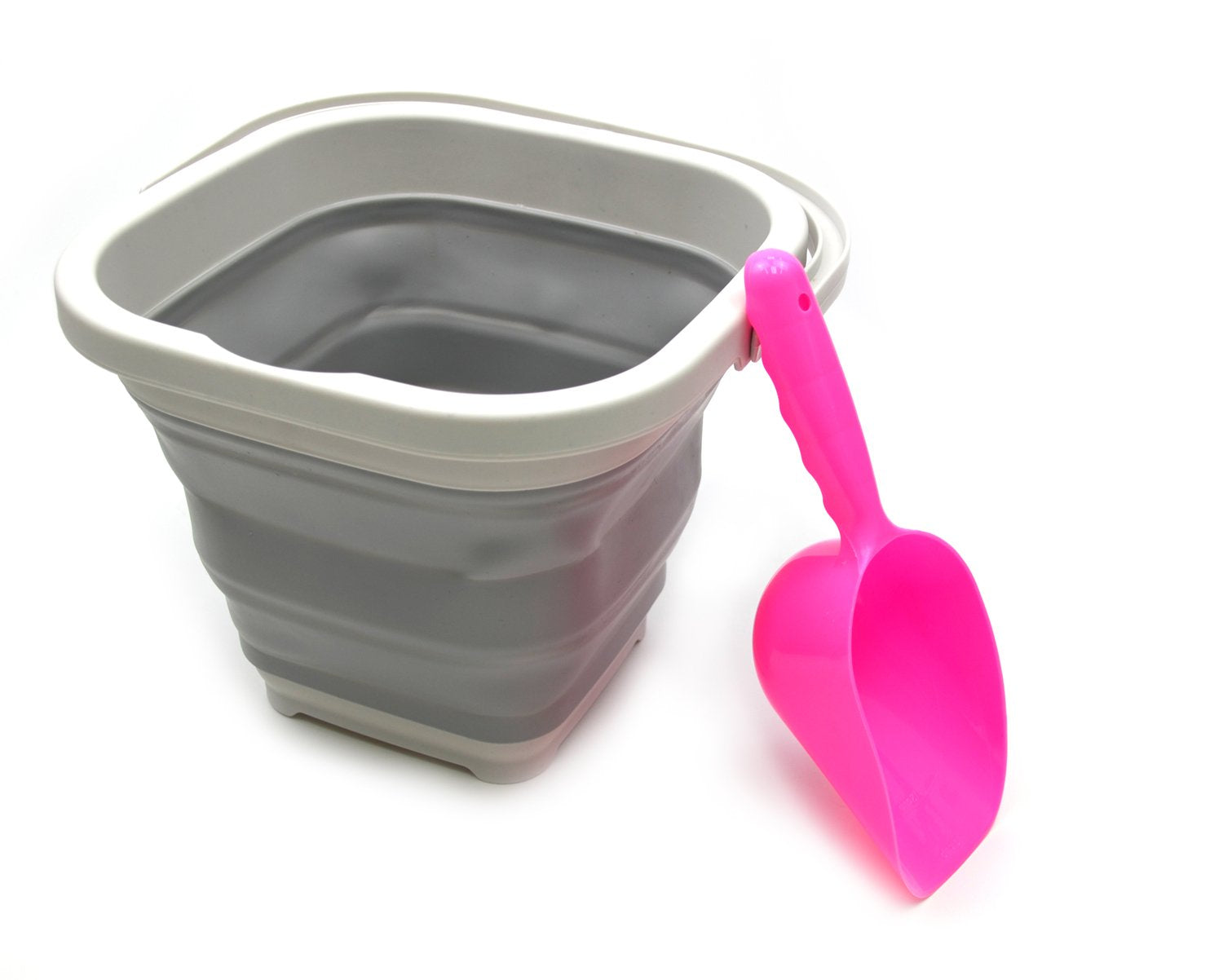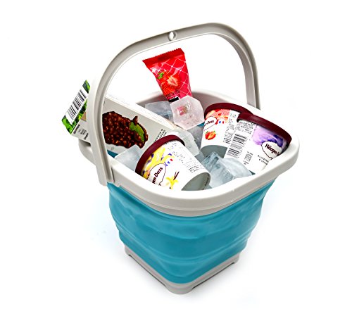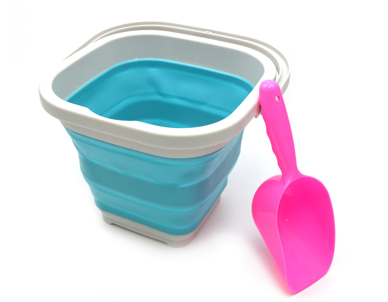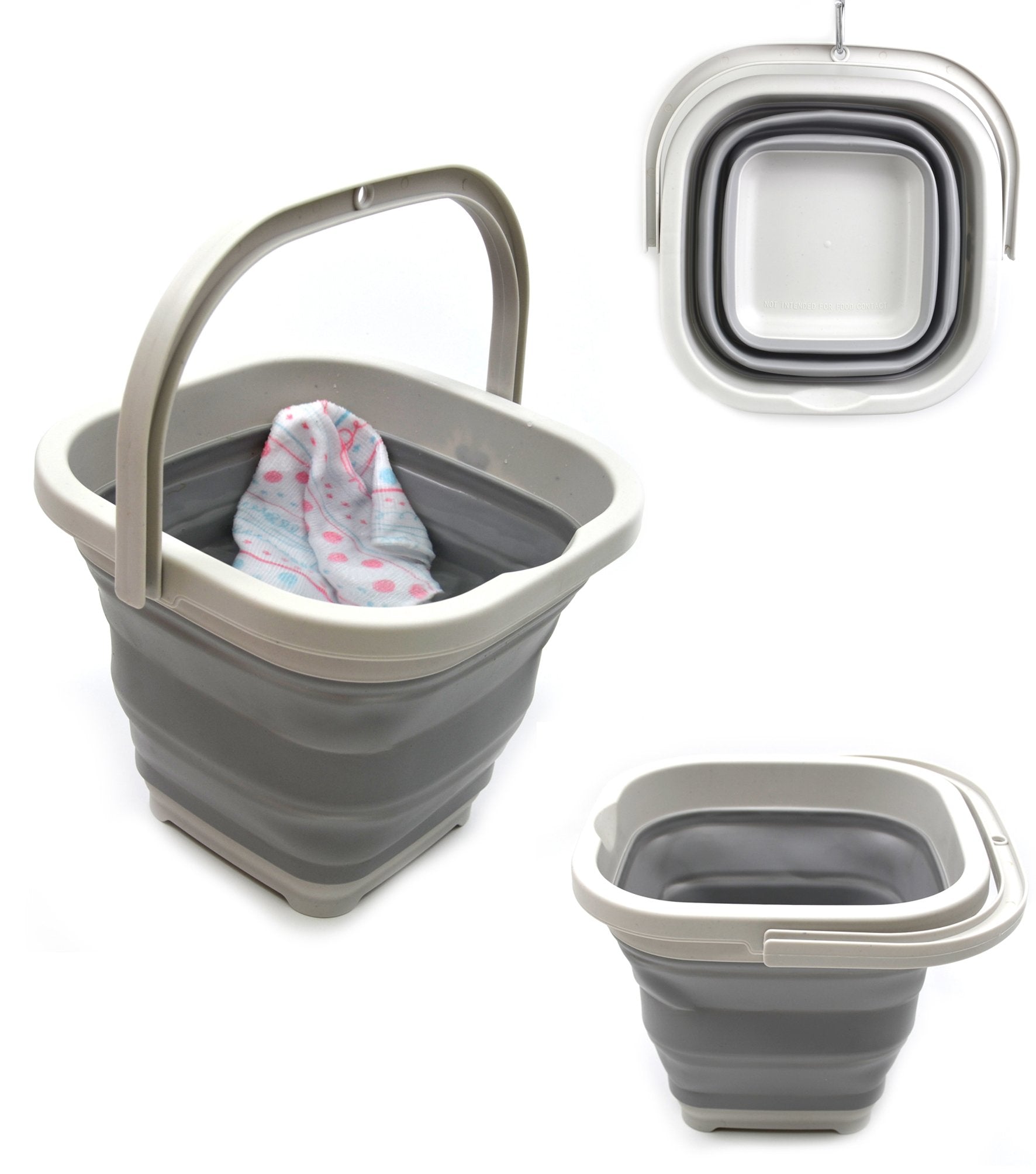 Details: **Collapsible TPE/PP Bucket **Brand: SAMMART **Material: TPE & PP **Expanded size: 9.5 x 9.5 x 7.8(h) inches **Collapsed size: 9.5 x 9.5 x 2(h) inches **Capacity: 5L (1.3 Gallon)