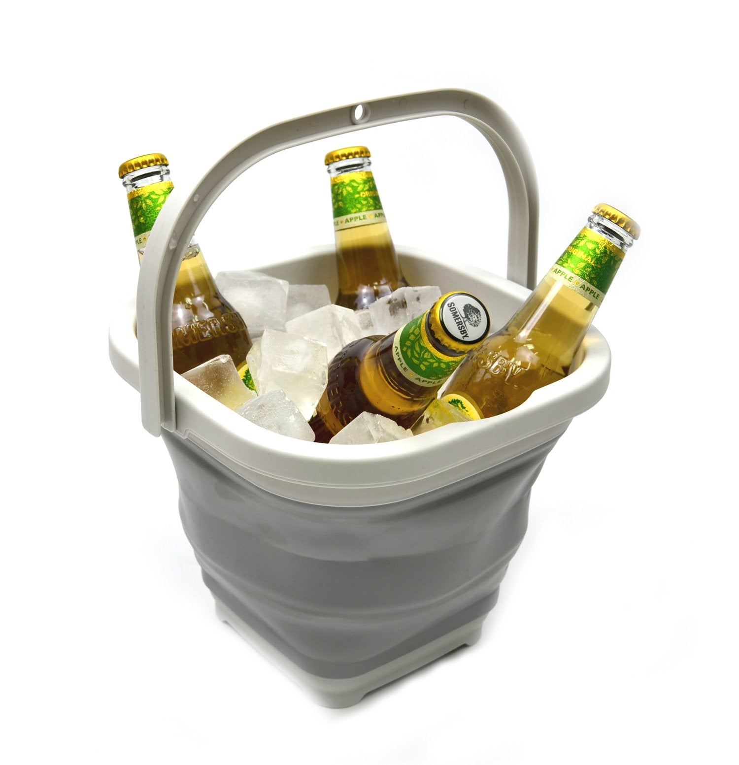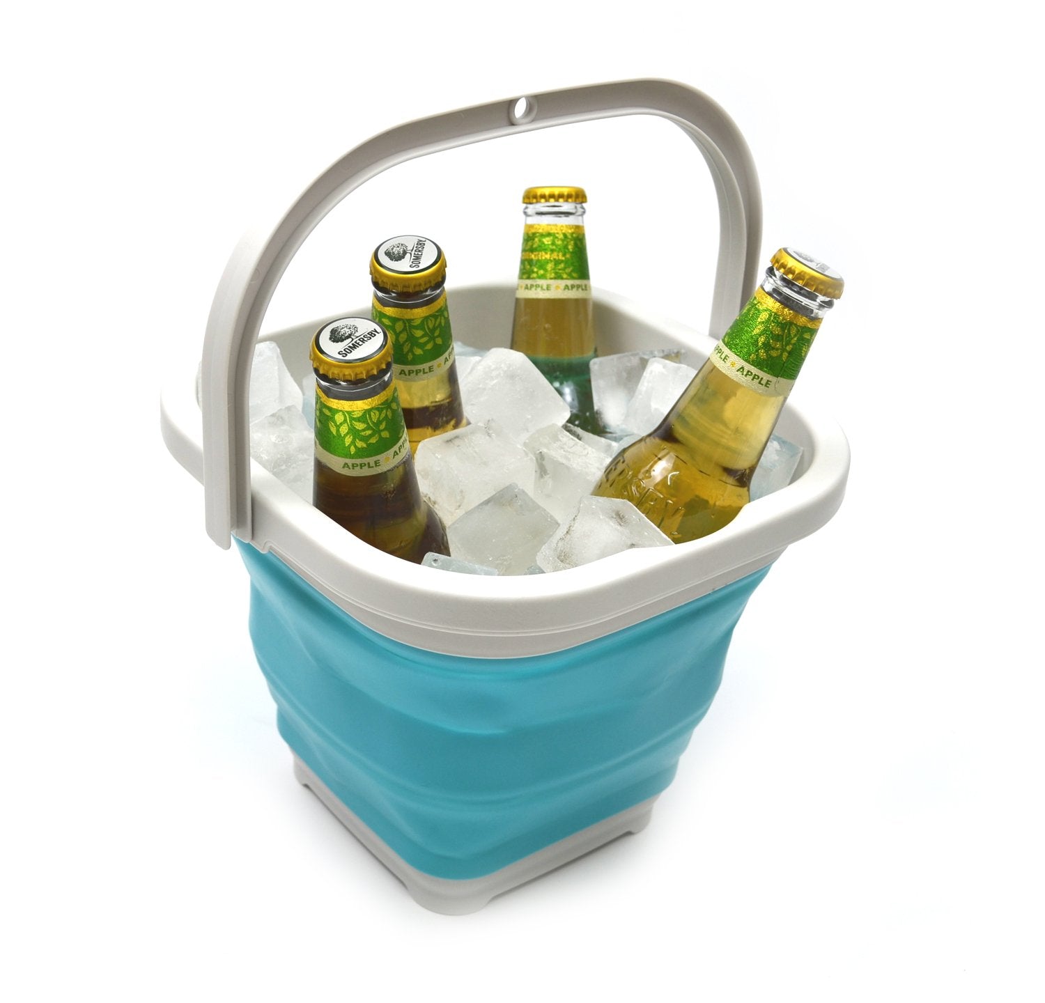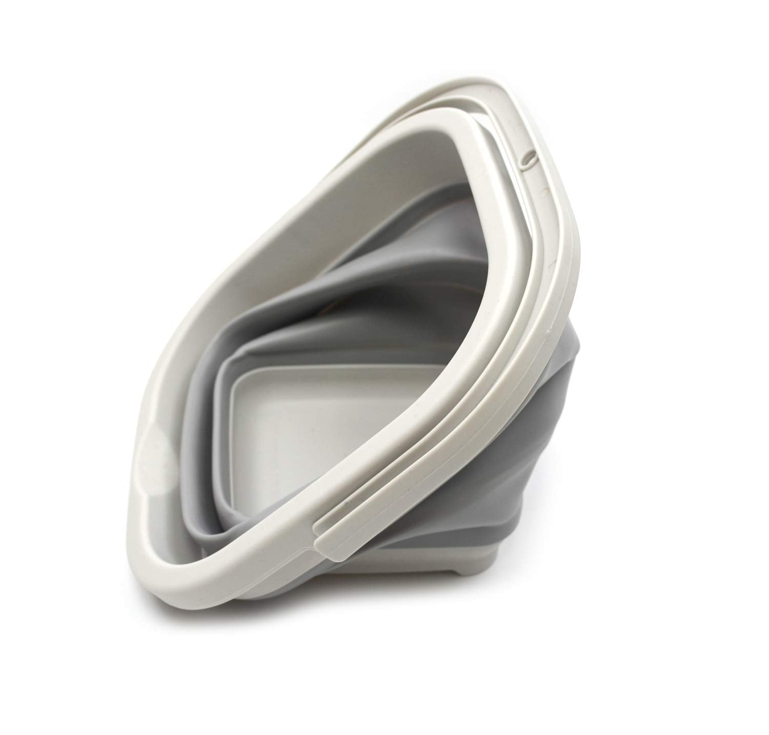 Details: **Collapsible TPE/PP Bucket **Brand: SAMMART **Material: TPE & PP **Expanded size: 9.5 x 9.5 x 7.8(h) inches **Collapsed size: 9.5 x 9.5 x 2(h) inches **Capacity: 5L (1.3 Gallon)