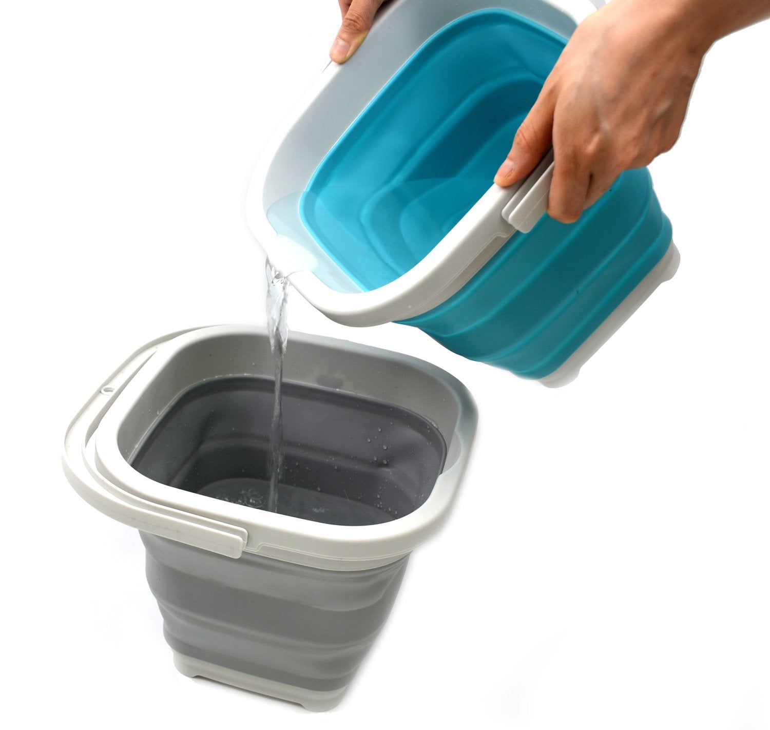 SAMMART 5L (1.3 Gallon) Square Collapsible Plastic Bucket - Foldable Square Tub - Portable Fishing Water Pail - Space Saving Outdoor Waterpot