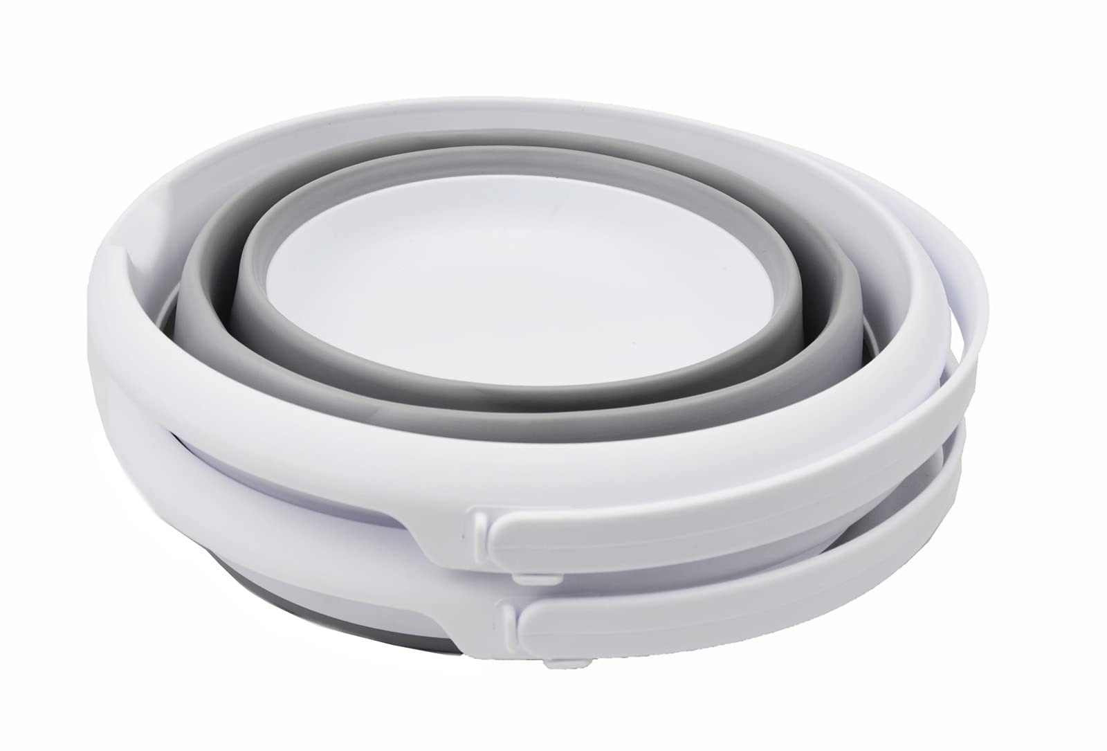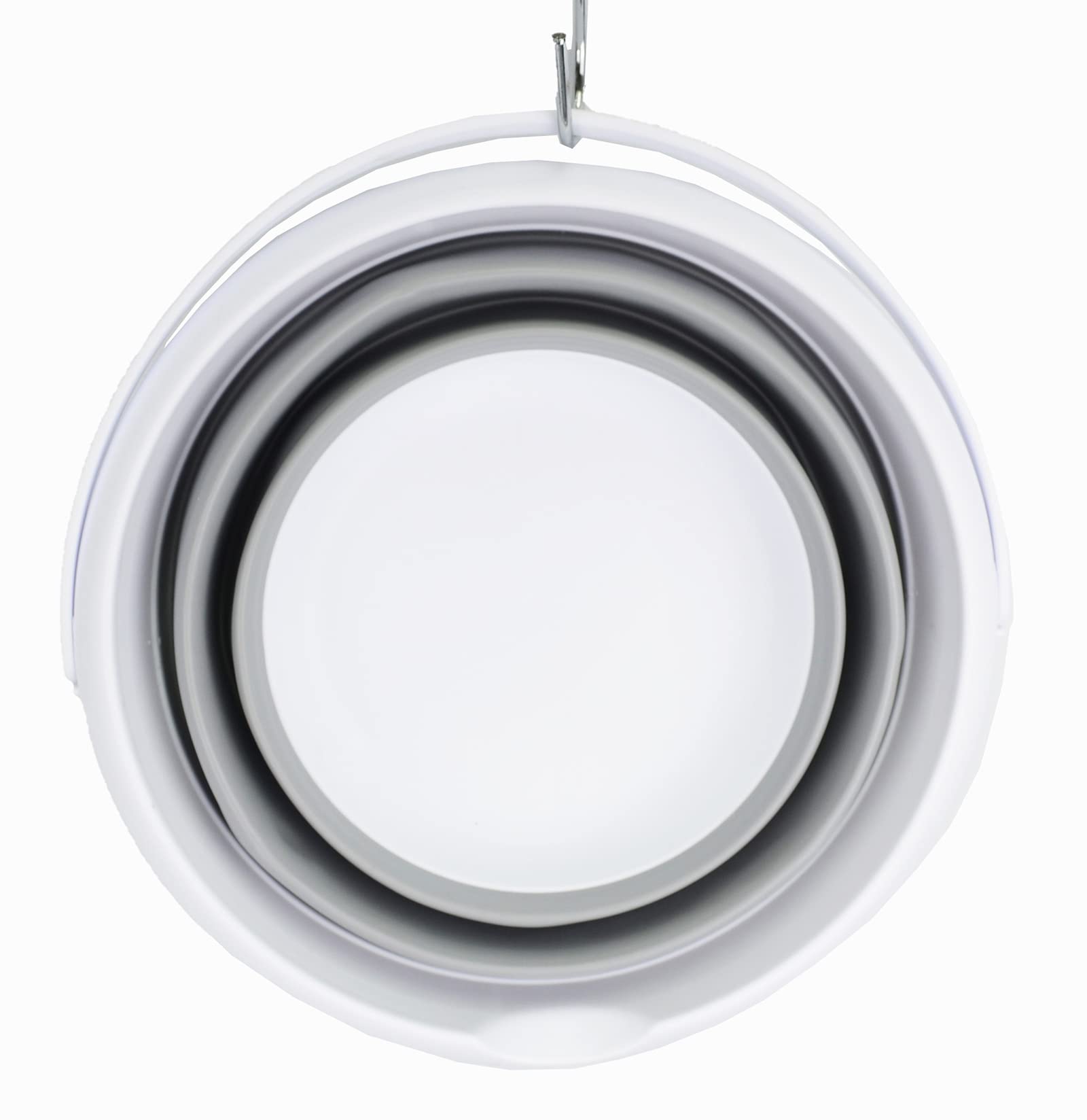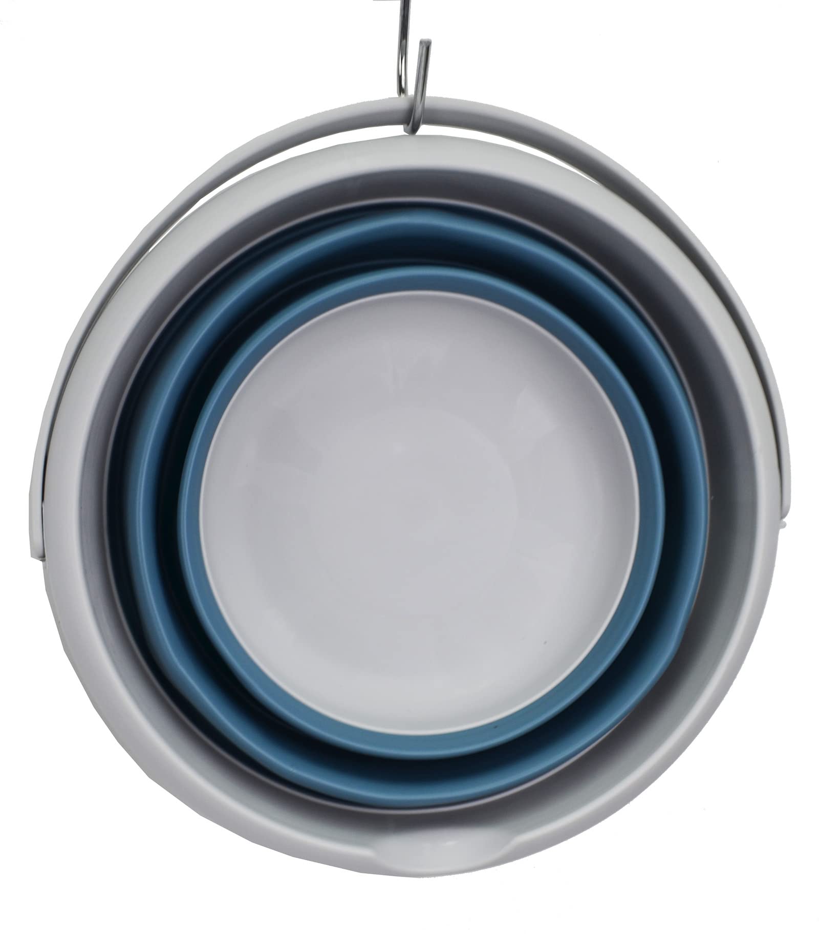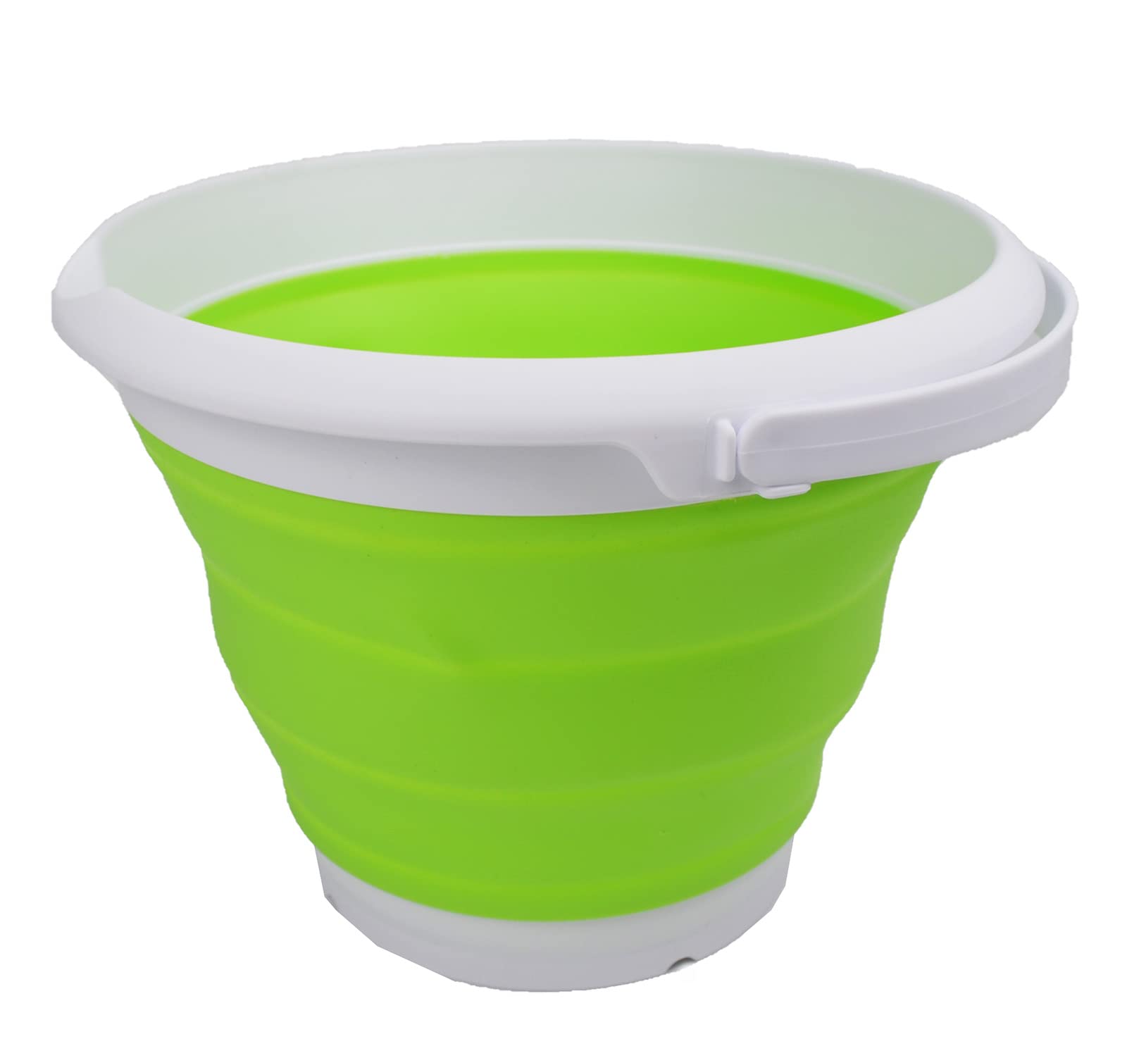 Details: **Collapsible TPE/PP Bucket **Brand: SAMMART **Material: TPE & PP **Expanded size: 11.8 (dia) x 8.9 (h) inches **Collapsed size: 11.8 (dia) x 2.1 (h) inches **Capacity: 8.5L (2.2 Gallon)