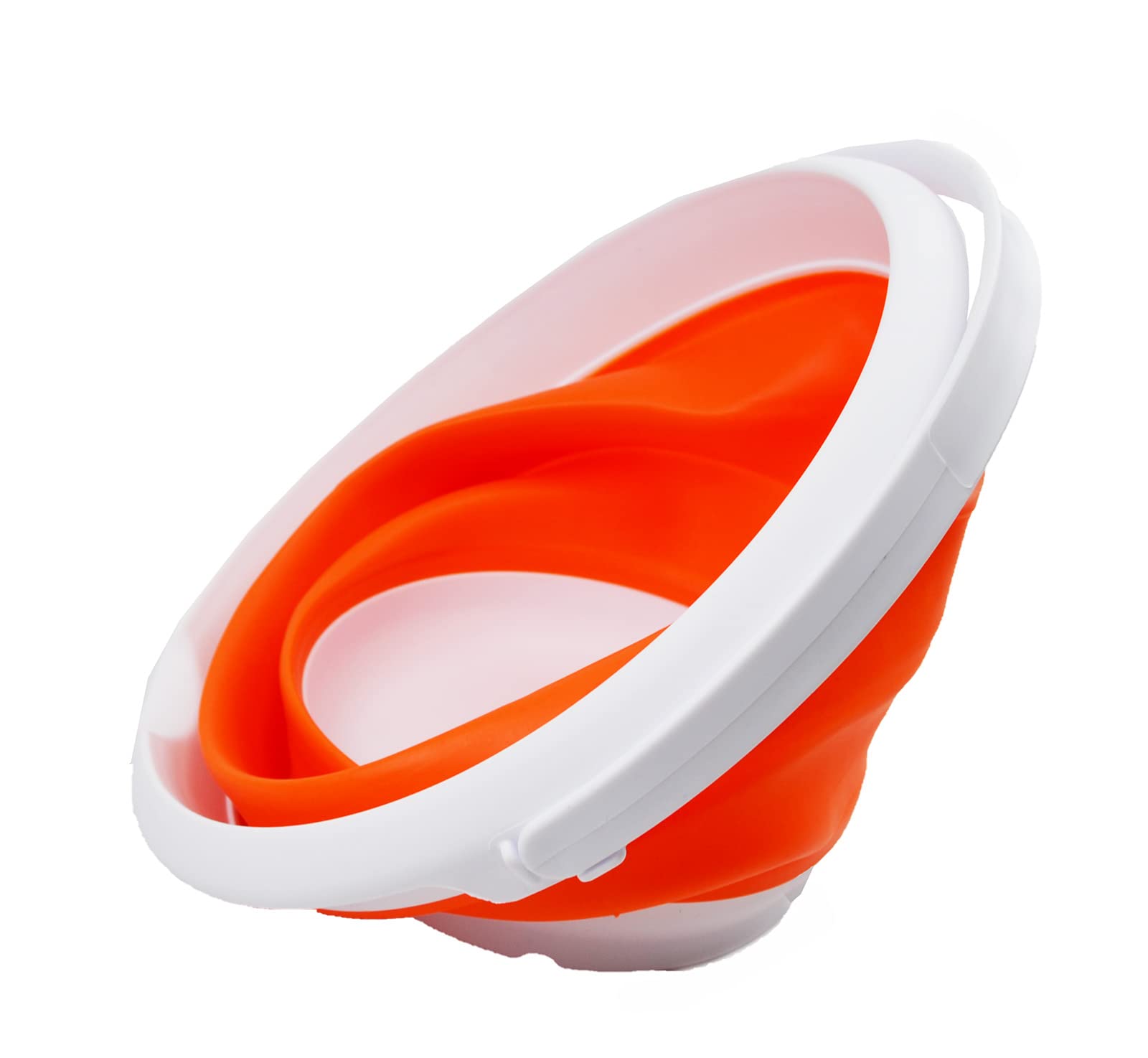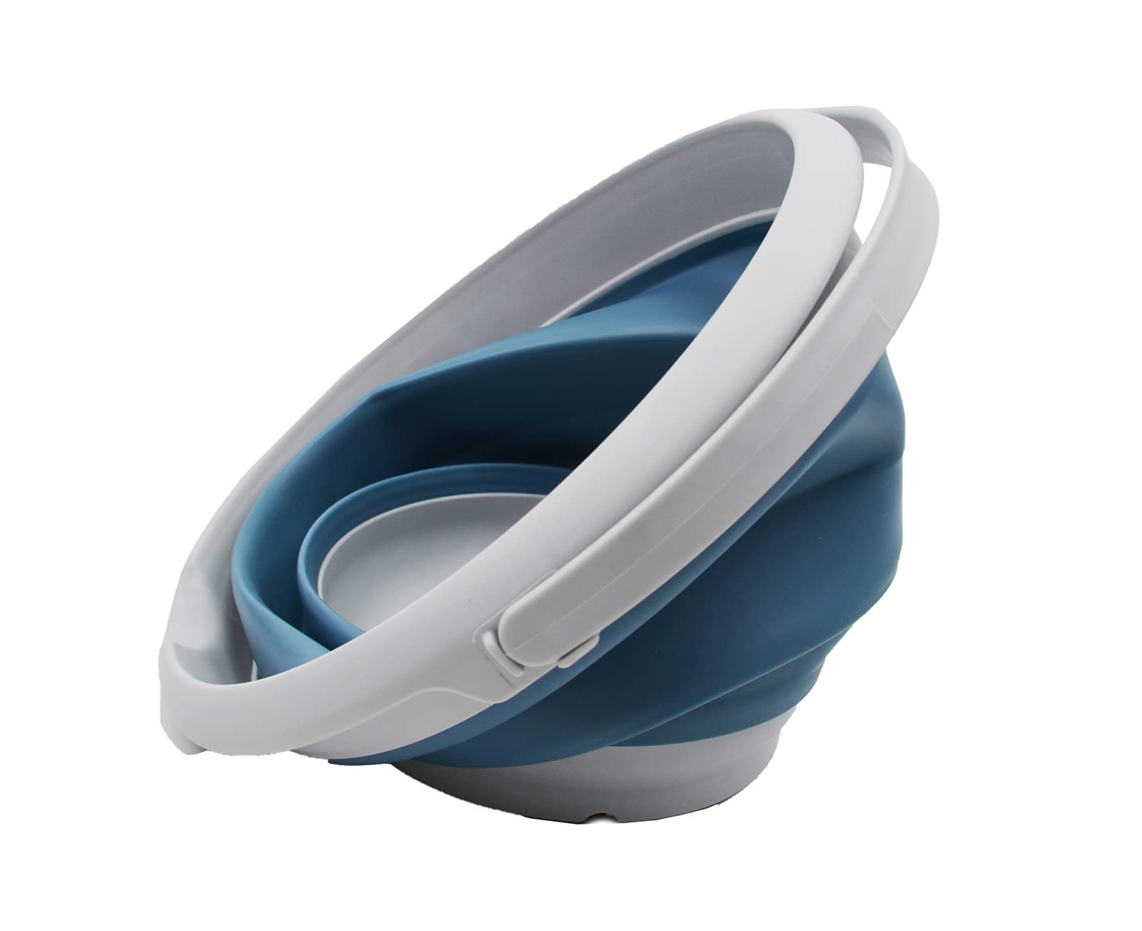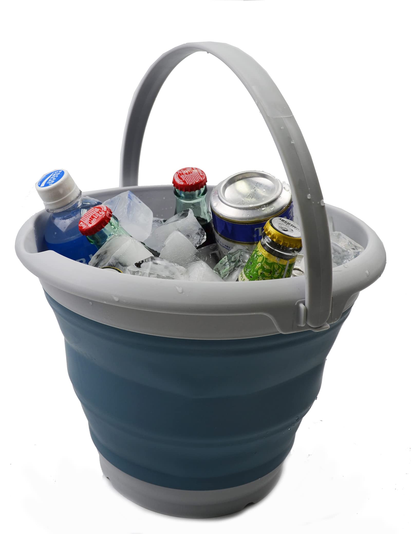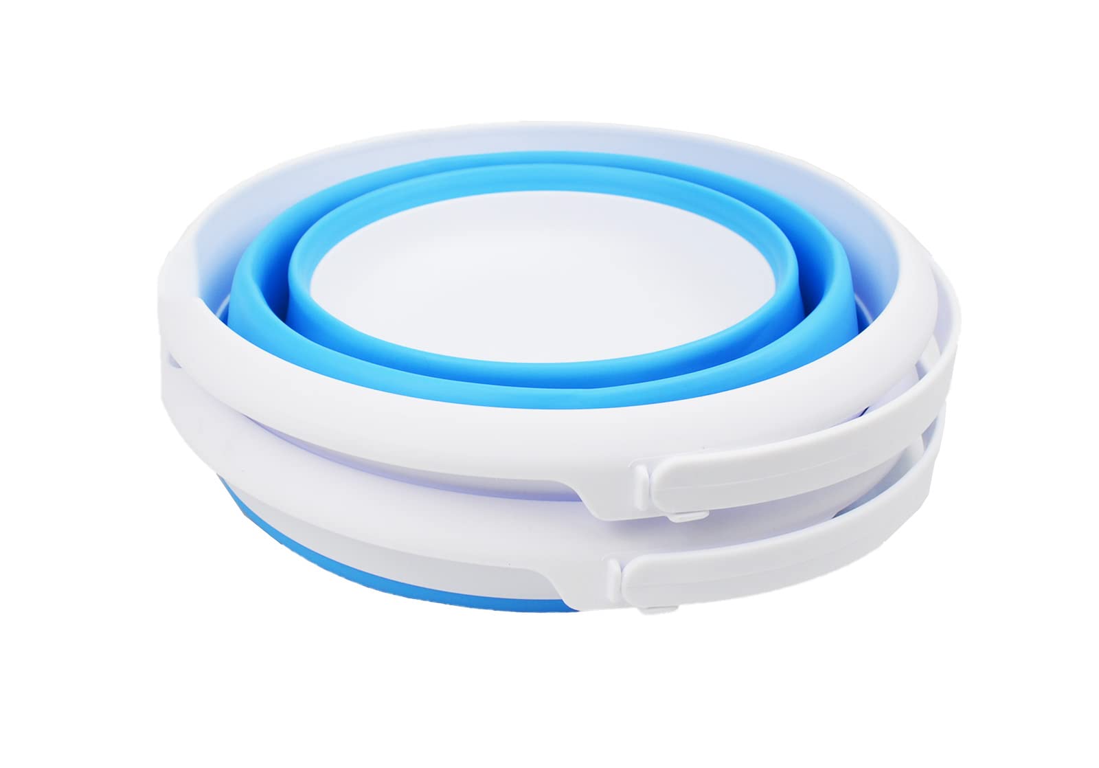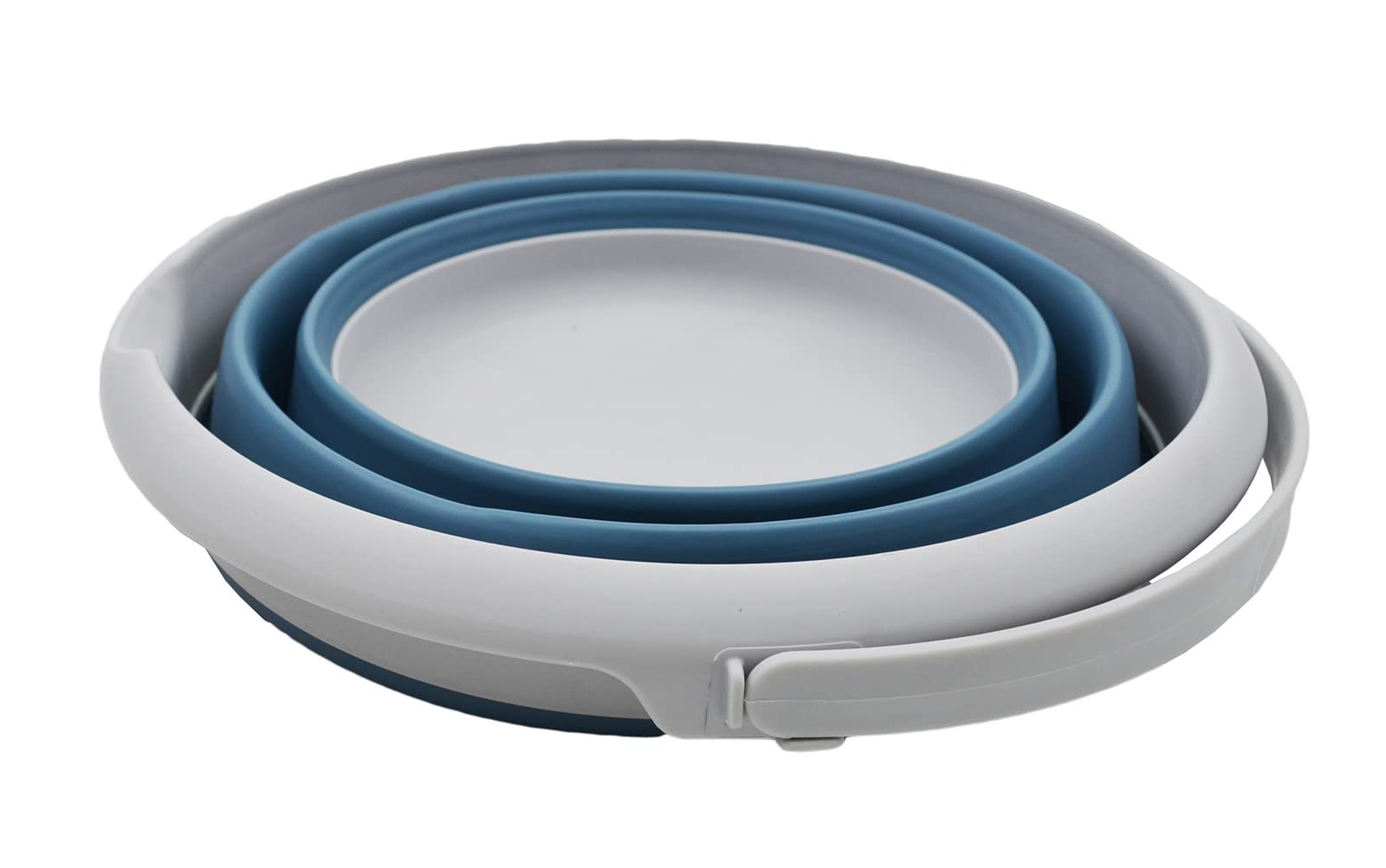 Details: **Collapsible TPE/PP Bucket **Brand: SAMMART **Material: TPE & PP **Expanded size: 11.8 (dia) x 8.9 (h) inches **Collapsed size: 11.8 (dia) x 2.1 (h) inches **Capacity: 8.5L (2.2 Gallon)
