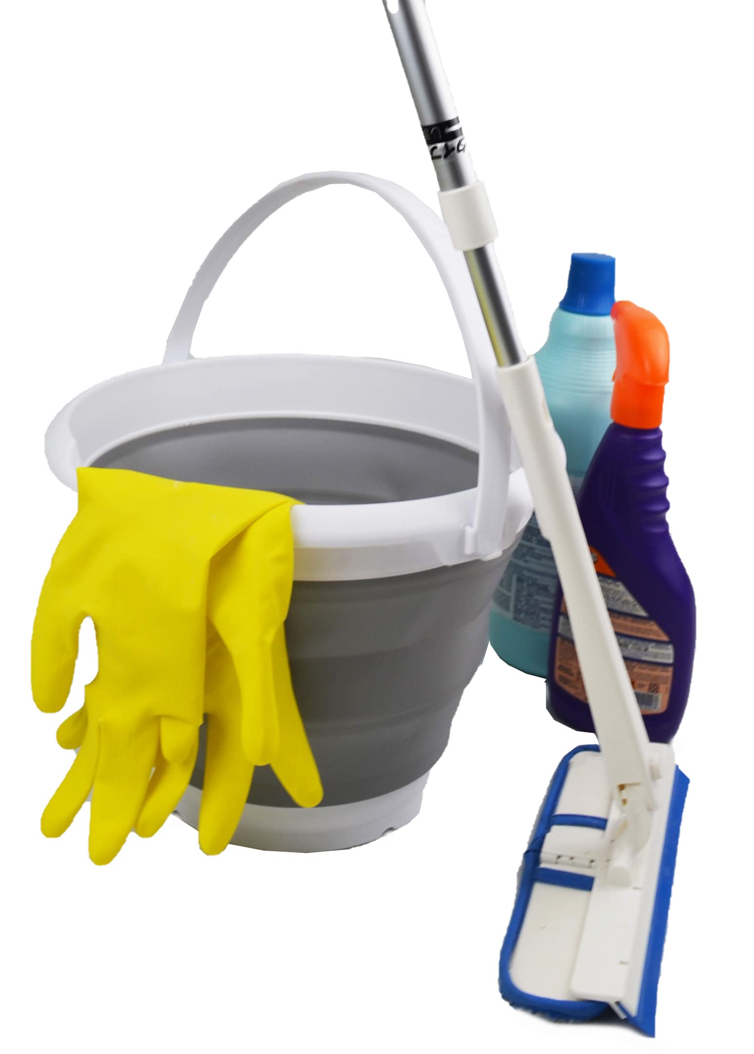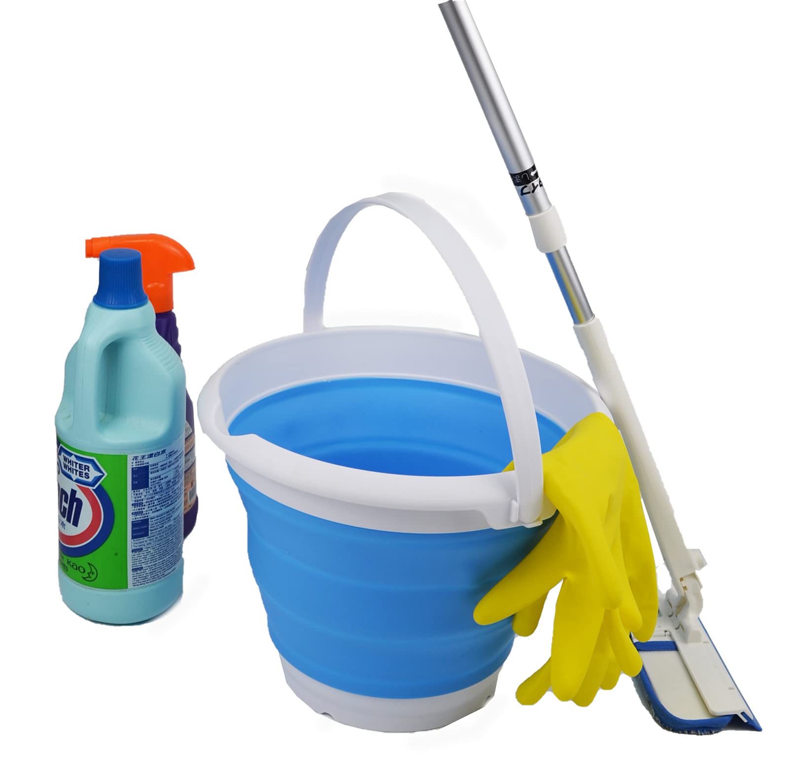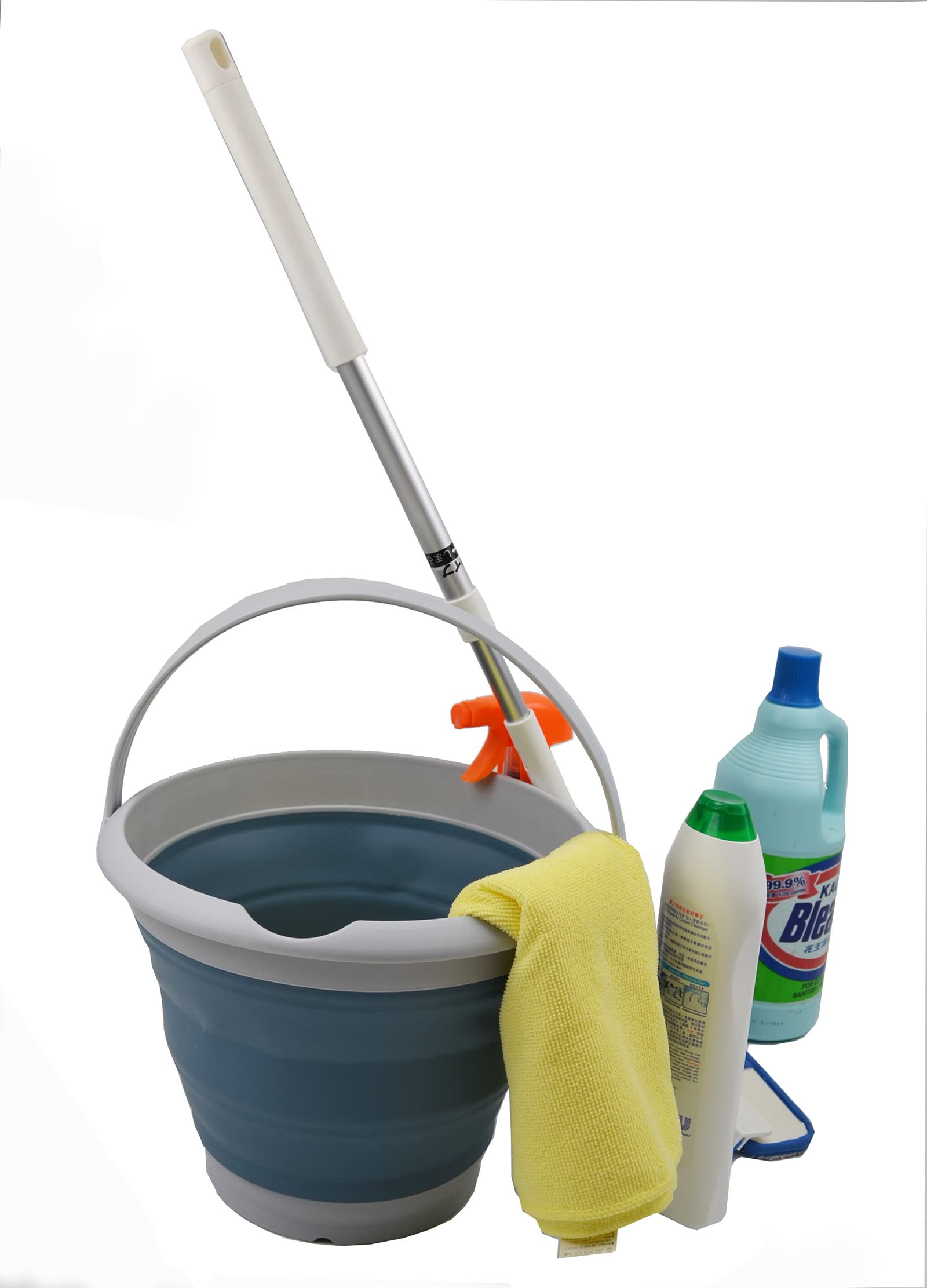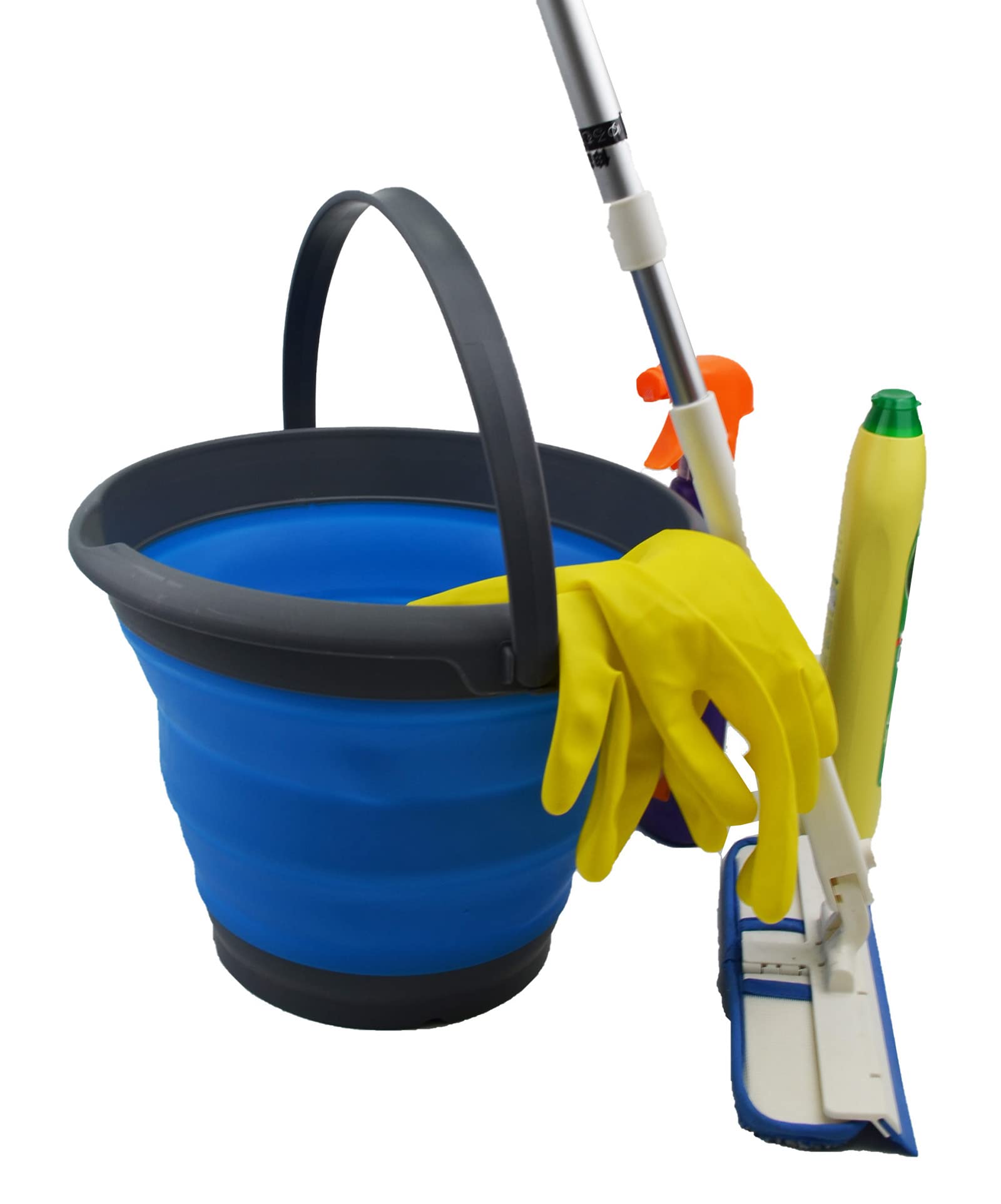 Details: **Collapsible TPE/PP Bucket **Brand: SAMMART **Material: TPE & PP **Expanded size: 11.8 (dia) x 8.9 (h) inches **Collapsed size: 11.8 (dia) x 2.1 (h) inches **Capacity: 8.5L (2.2 Gallon)