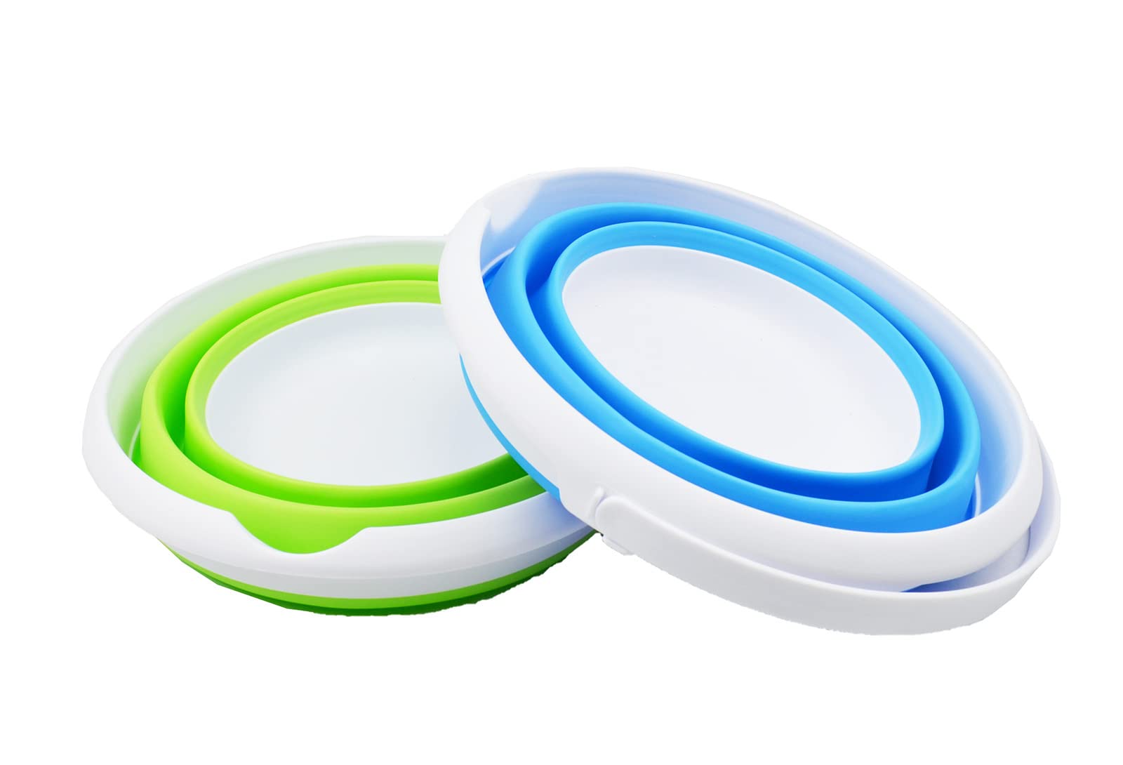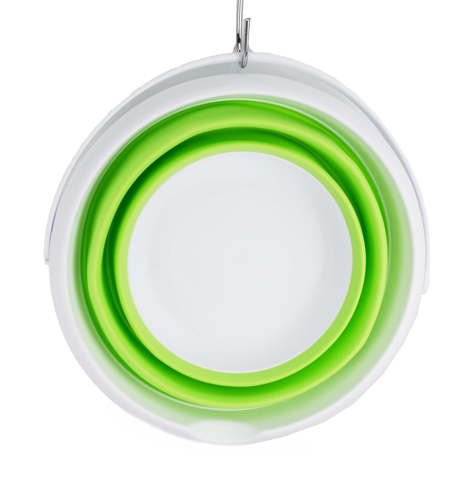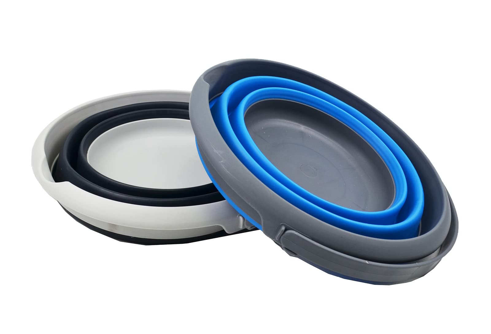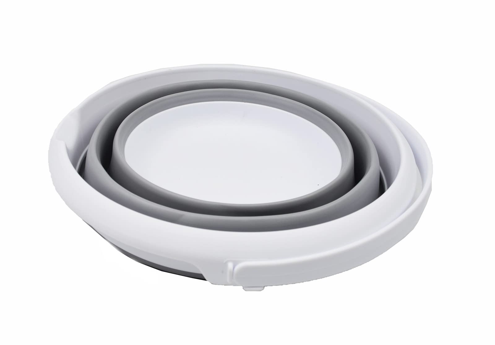 - Space saving with Expanded size: 11.8 (dia) x 8.9 (h) inches and its height just 2.1 inches after folds, save over 70% space when storage. Capacity: 8.5L (2.2 Gallon)