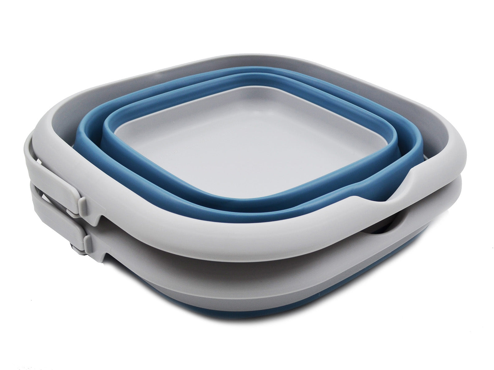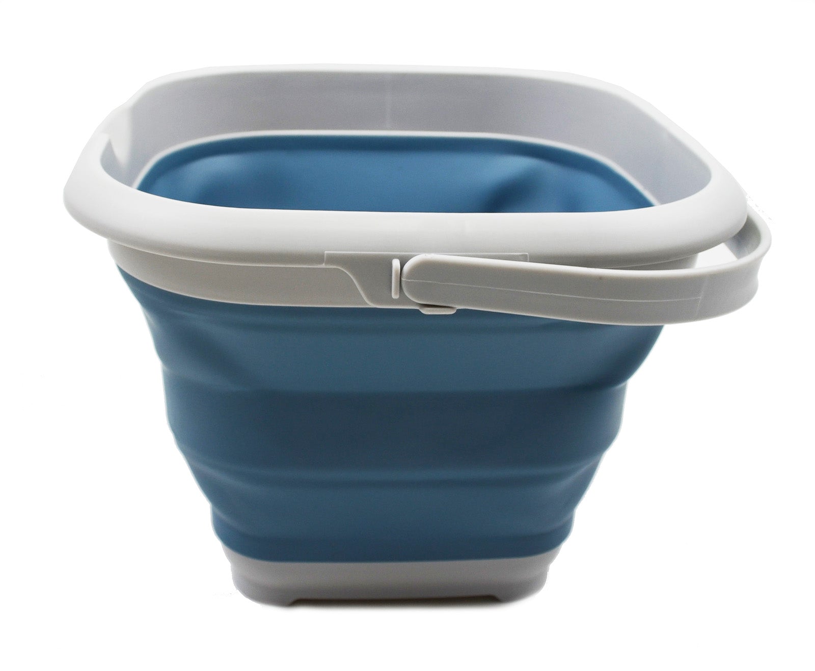 Details: **Collapsible Square TPE/PP Bucket **Brand: SAMMART **Material: TPE & PP **Expanded size: 11.4 x 11.4 x 8.4 (h) inches **Collapsed size: 11.4 x 11.4 x 2 (h) inches **Capacity: 8.5L (2.2 Gallon)