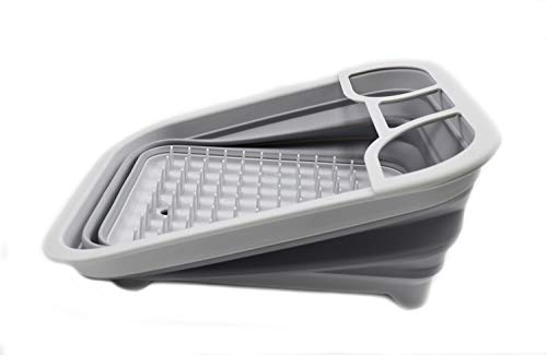 Details: **Collapsible Dish Drainer with Swivel Spout **Brand: SAMMART **Material: TPE & PP **Expanded size: 16.8 x 14.5 x 6.7 inches **Collapsed size: 16.8 x 14.5 x 2.2 inches.