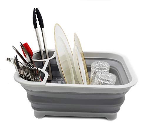 SAMMART 8.5L (2.2 gallons) Collapsible Plastic Dish Drainer - Foldable Drying Rack with Swivel Spout - Portable Dinnerware Organizer - Pop Up Kitchen Storage