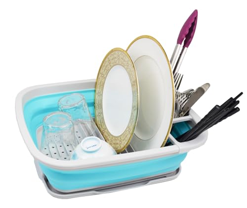 SAMMART 8L (2.1 gallons) Collapsible Plastic Dish Drainer with Drainer Board - Foldable Drying Rack Set - Portable Dinnerware Organizer - Pop Up Saving Kitchen Storage Tray