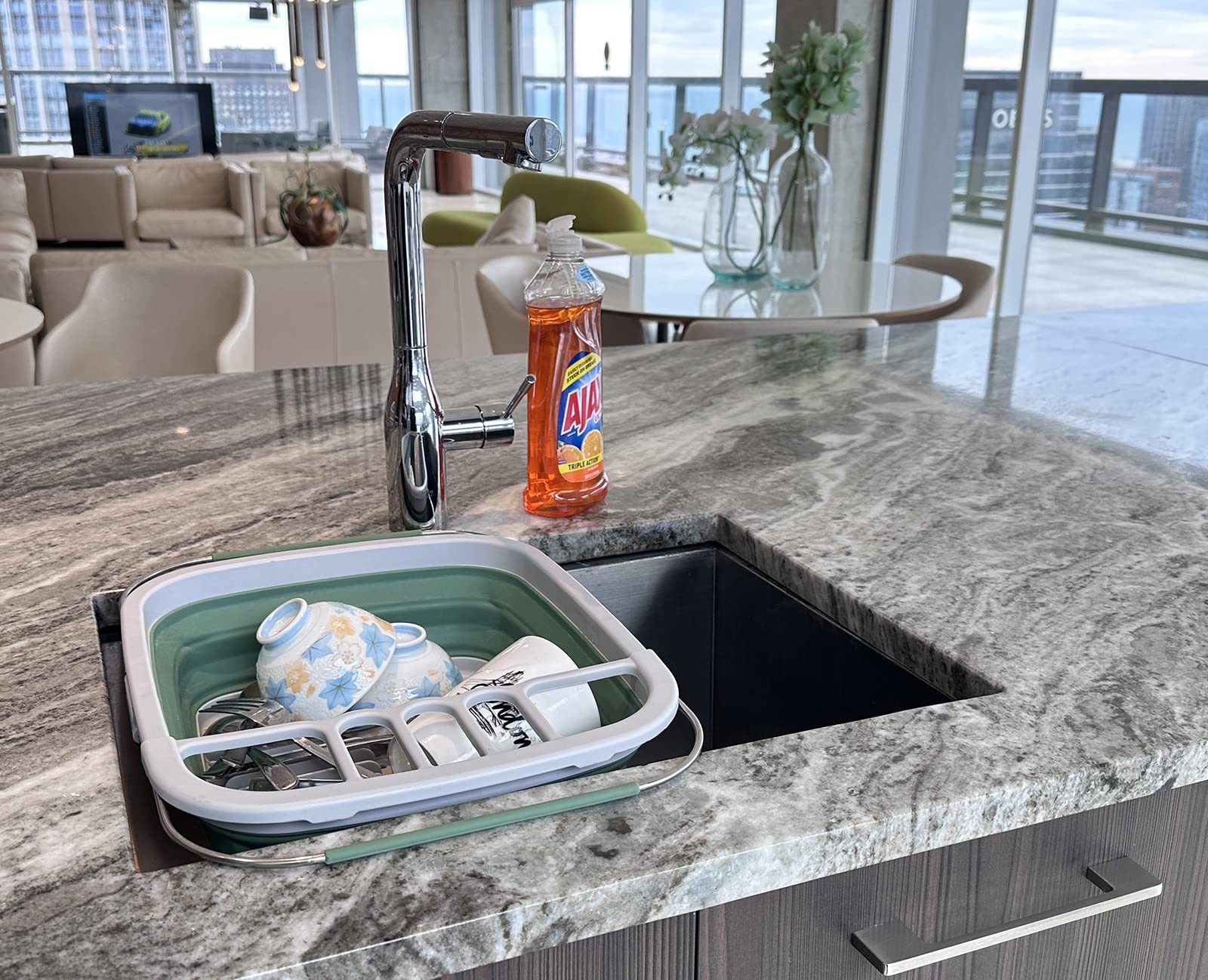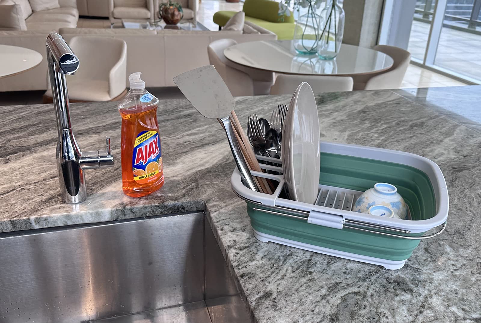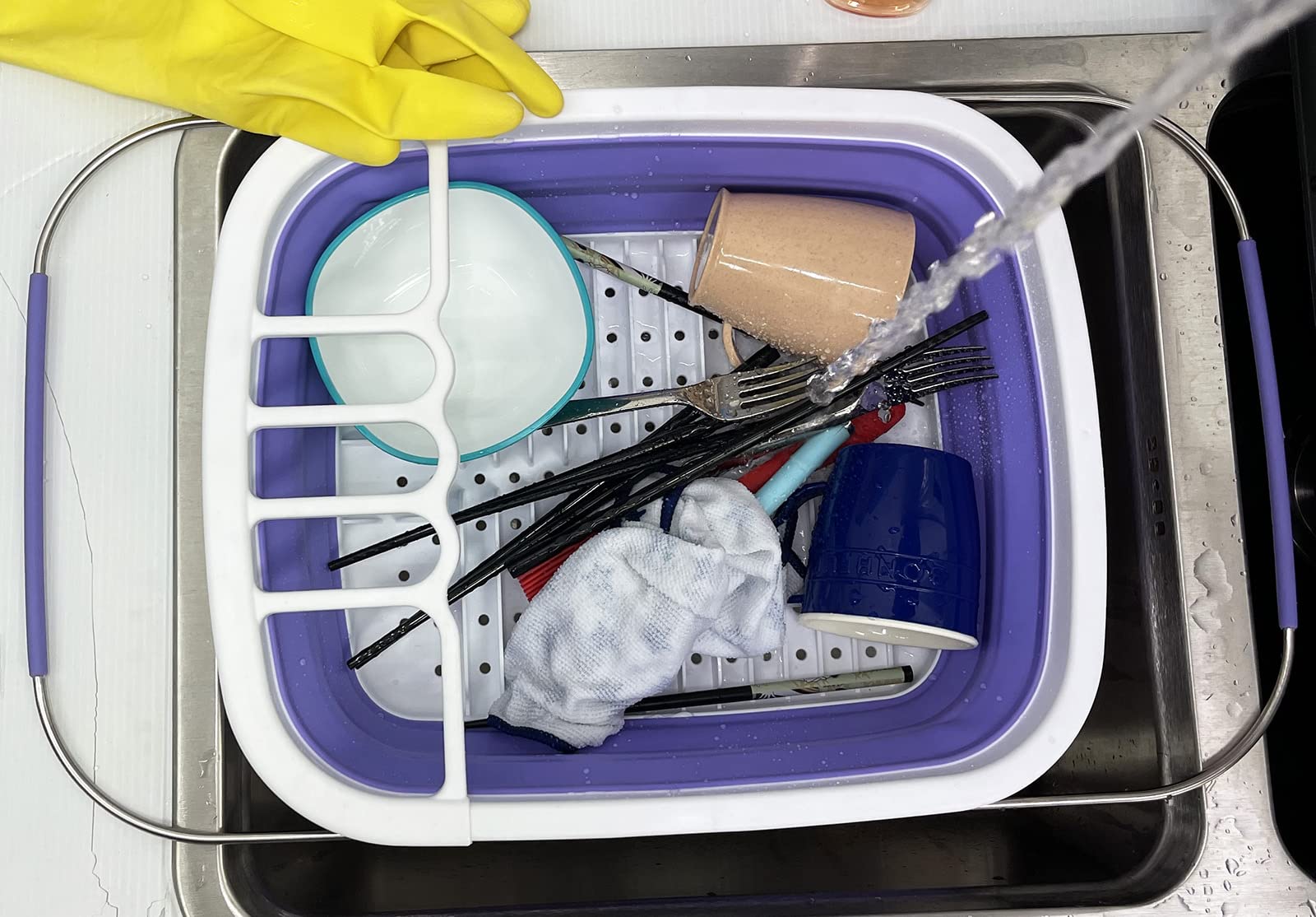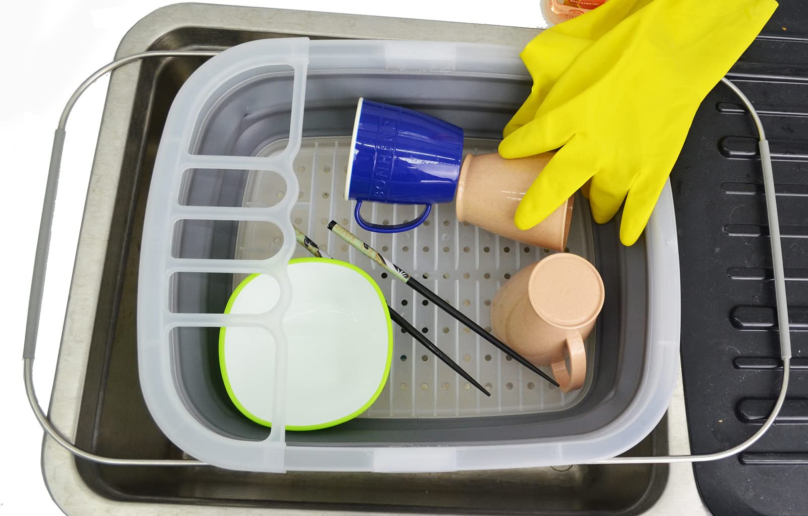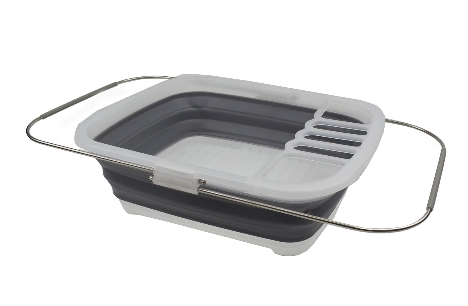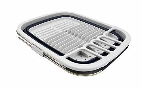 Details: **Expandable & Collapsible Dish Drainer **Brand: SAMMART **Material: TPE & PP **Expanded size: 21.6 x 12.6 x 4.7 inches **Collapsed size: 15 x 12.6 x 1.7 inches