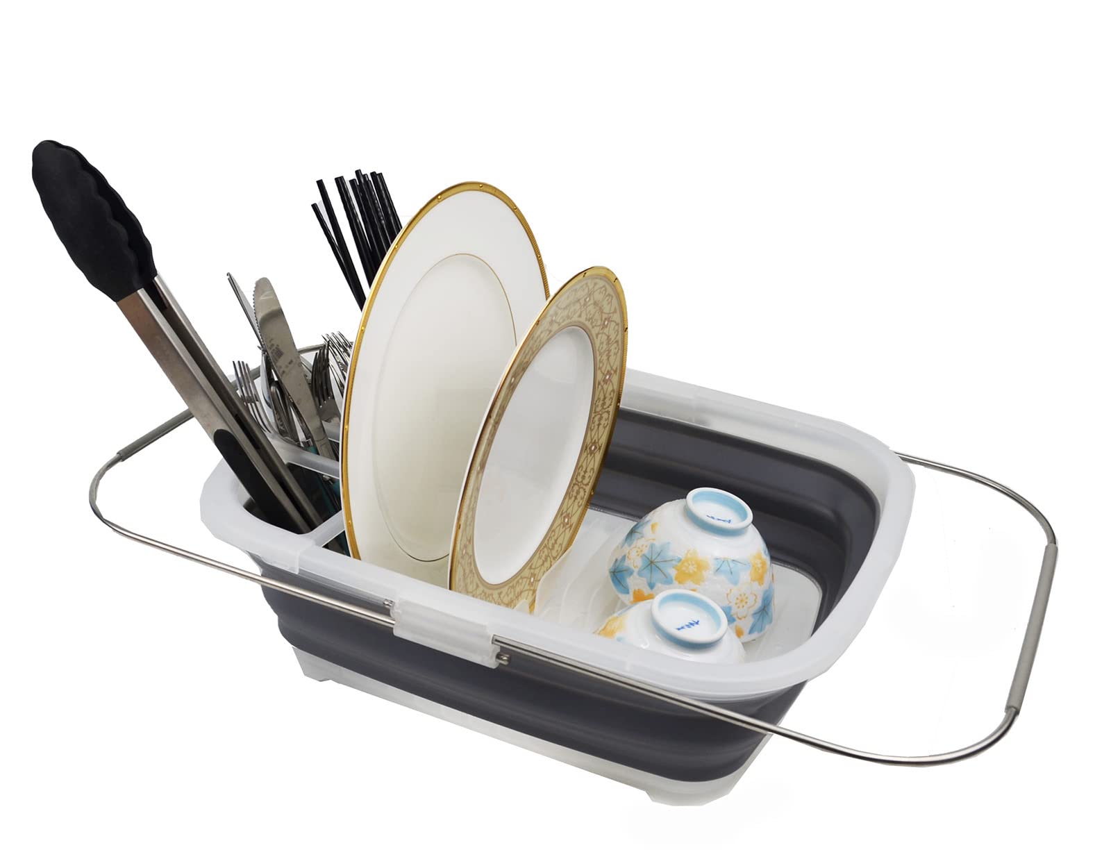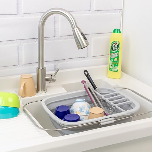 SAMMART 8L (2.11Gallons) Expandable Collapsible Dish Drainer - Foldable Drying Rack - Portable Dinnerware Organizer - Space Saving Kitchen Storage Tray