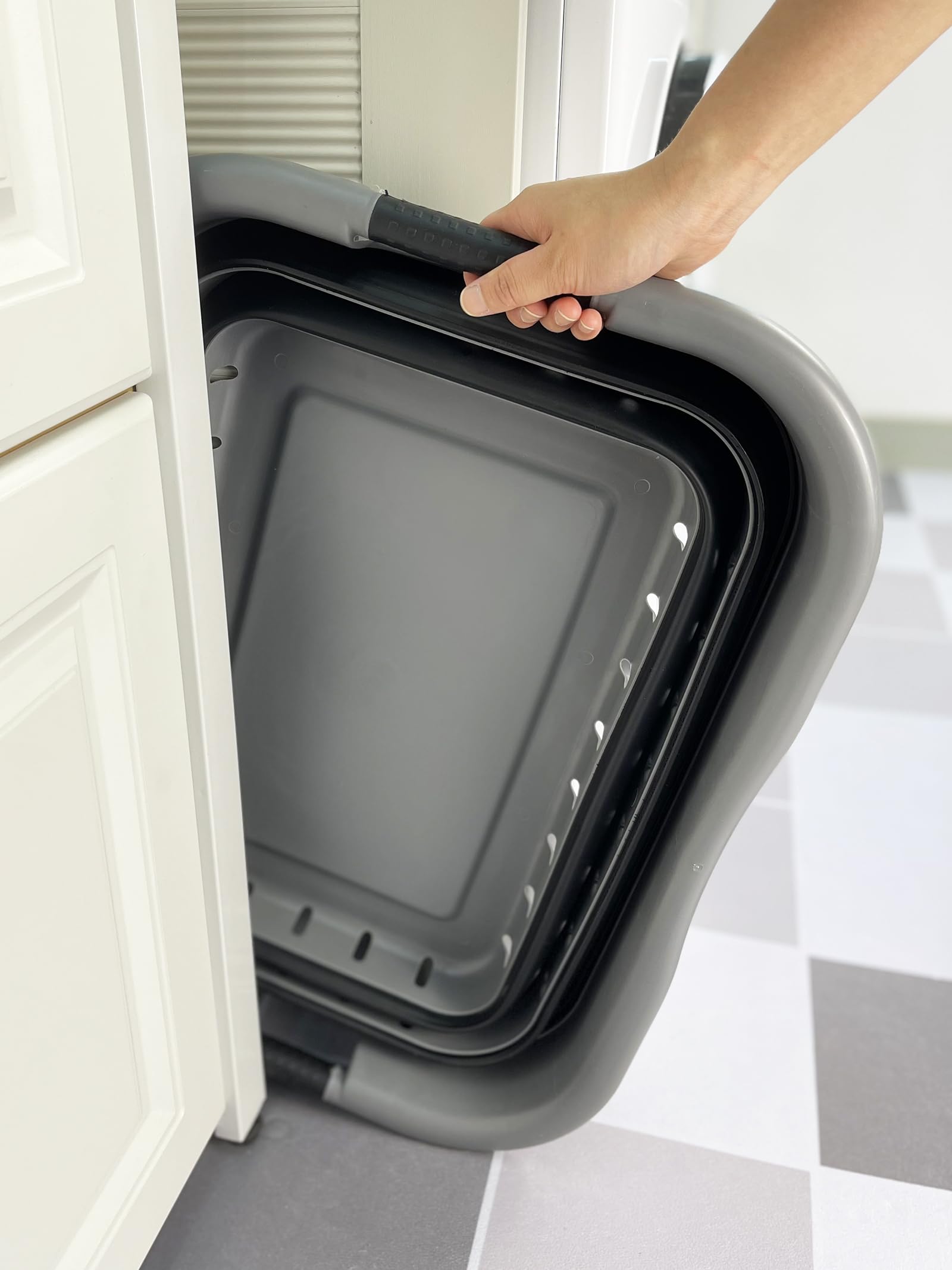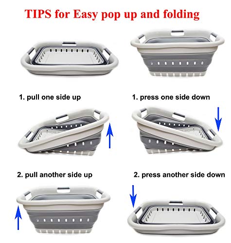 - BPA Free. Comfort grip handles for easy carry. User friendly by simply pop-up to open when using and collapses to flat for space saving