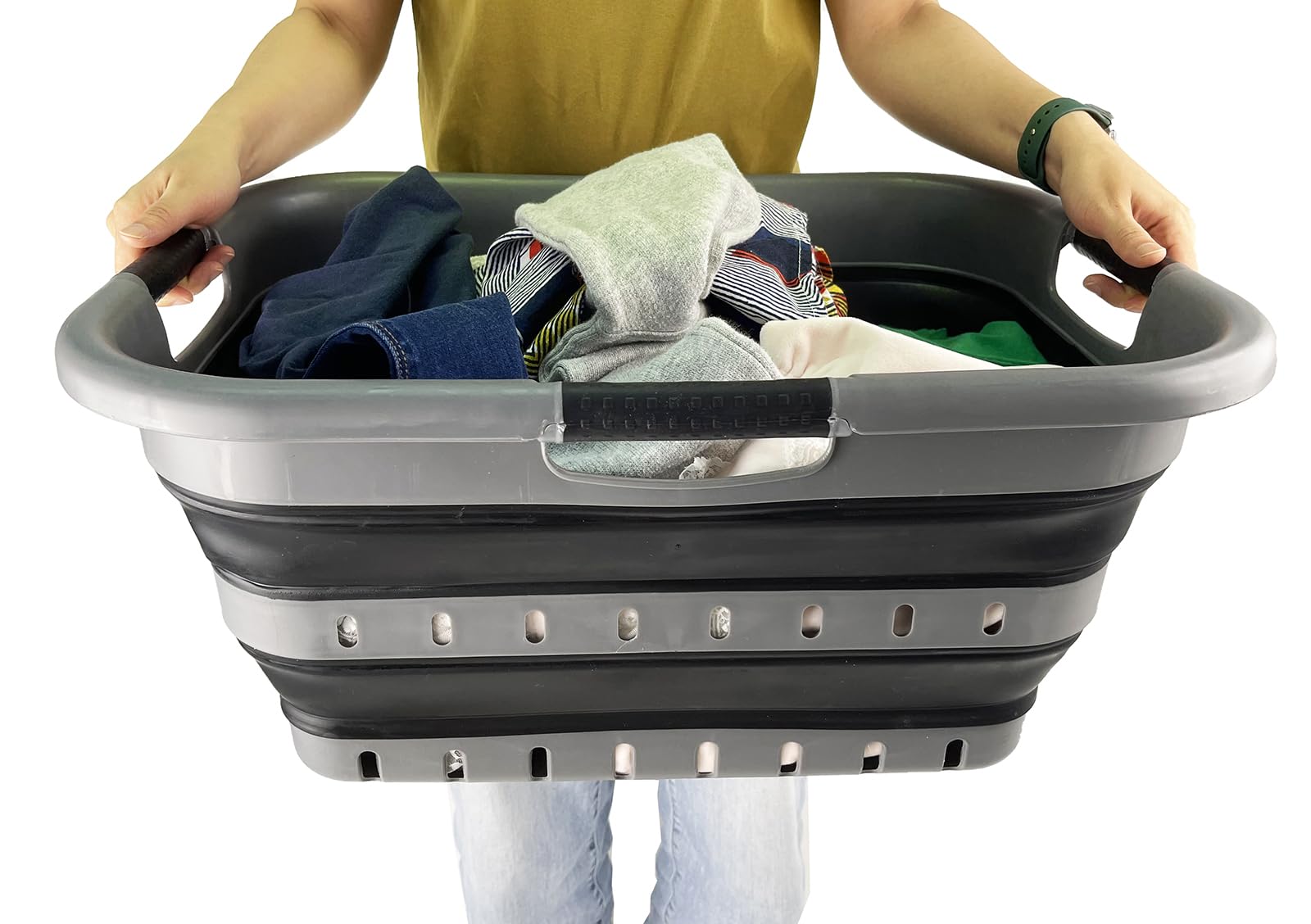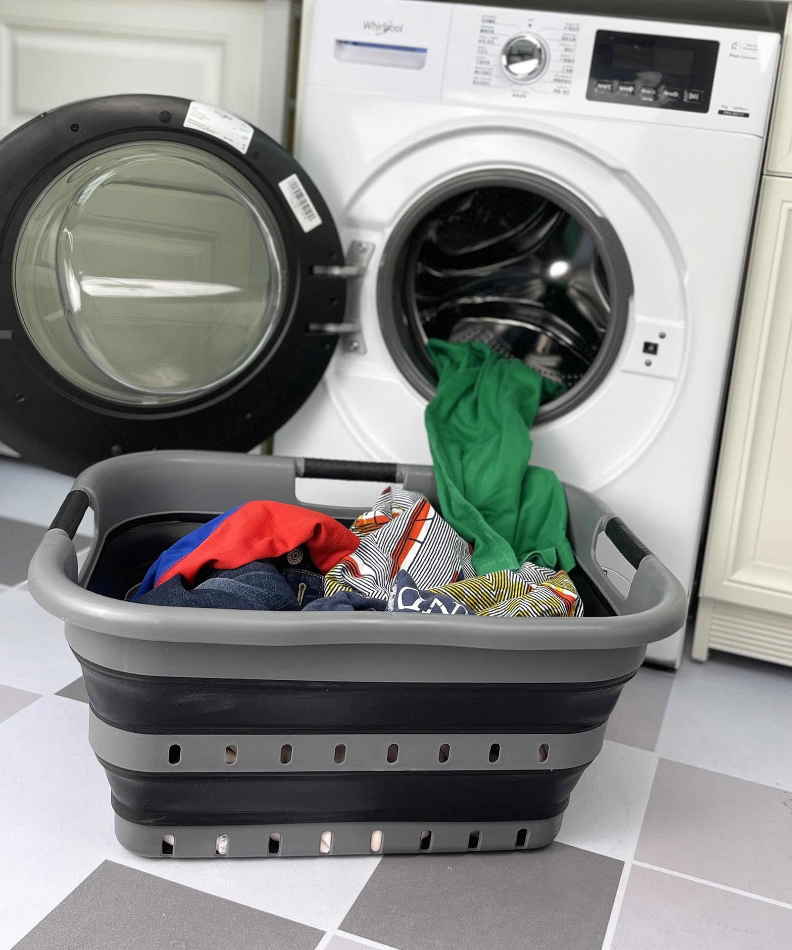 Details: **Collapsible TPE/PP Laundry Basket **Brand: SAMMART **Material: TPE & PP **Expanded size: 22.8 x 17.5 x 10.5 inches **Collapsed size: 22.8 x 17.5 x 3 inches