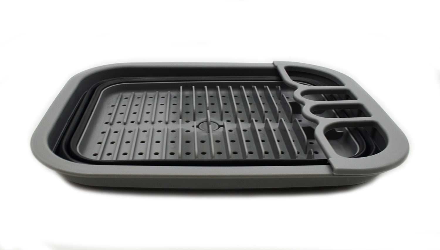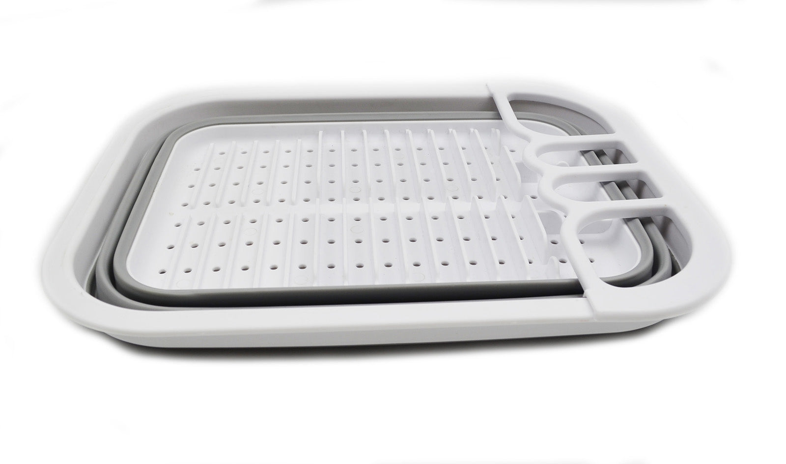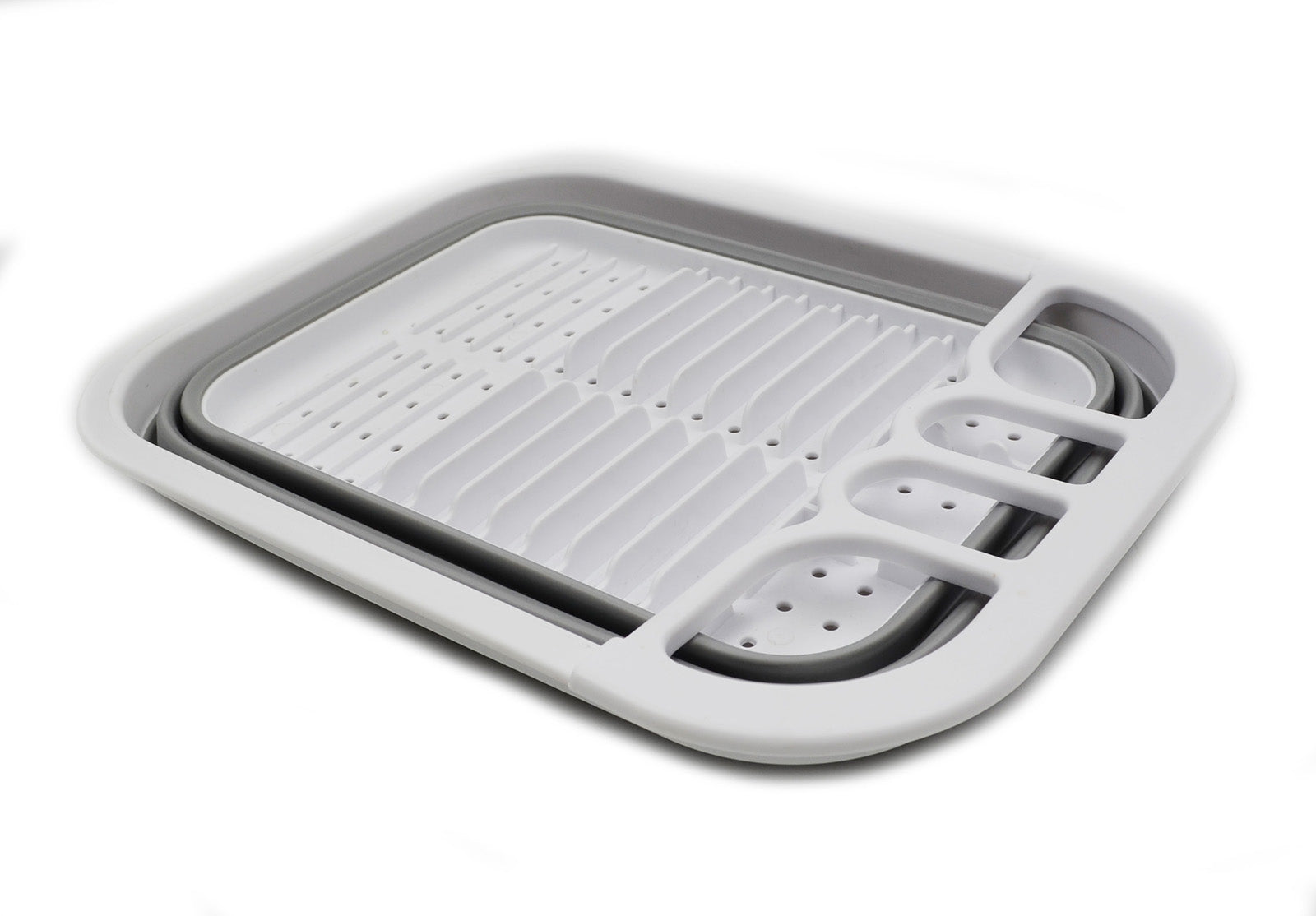 Details: **Collapsible Dish Drainer with Drainer Board **Brand: SAMMART **Material: TPE & PP **Expanded size: 14.6 x 12.6 x 5.5 inches **Collapsed size: 14.6 x 12.6 x 1.8 inches