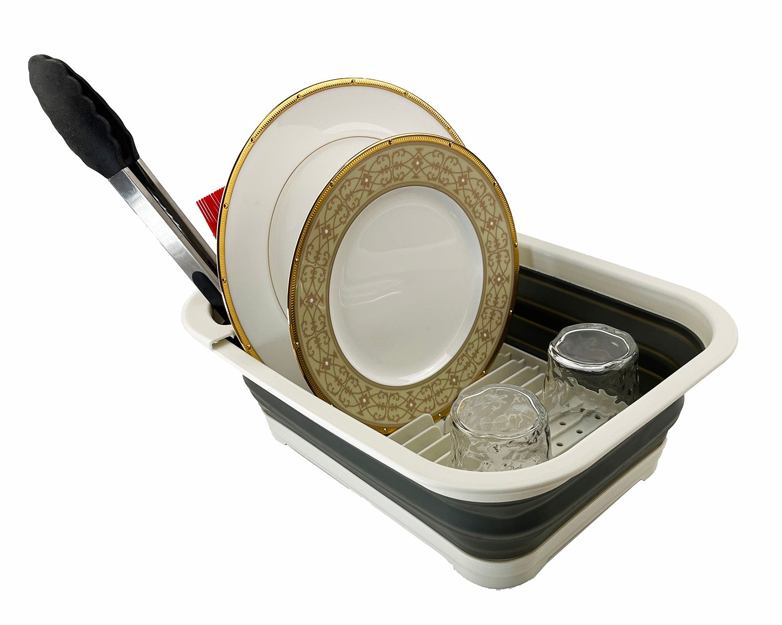 SAMMART Collapsible Dish Drainer with Drainer Board - Foldable Drying Rack Set - Portable Dinnerware Organizer - Space Saving Kitchen Storage Tray