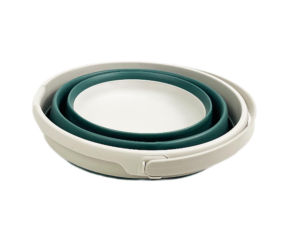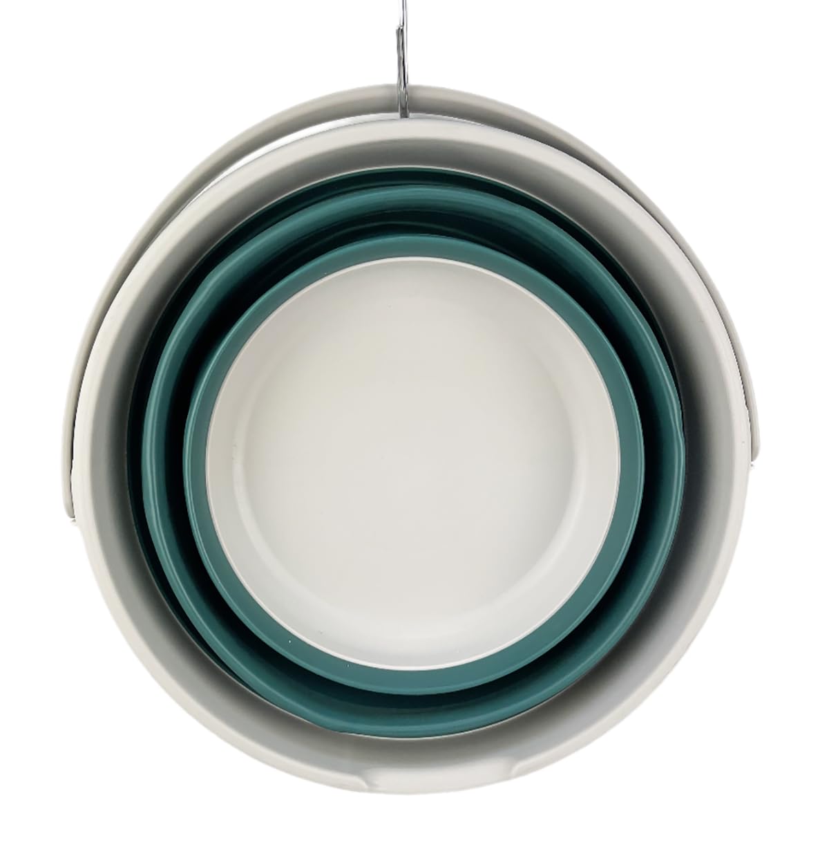 SAMMART Collapsible Plastic Bucket - Foldable Round Tub with Handle - Pop Up Saving (Grey/Jade Crystal, 10L)