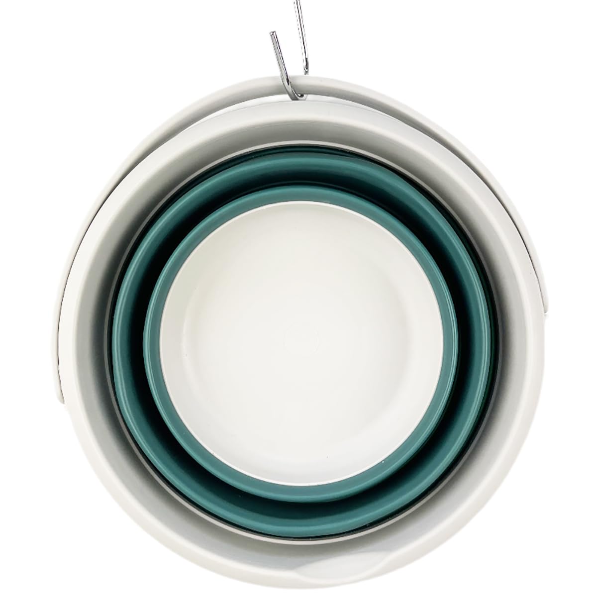 SAMMART Collapsible Plastic Bucket - Foldable Round Tub with Handle - Pop Up Saving (Mist Blue+Jade Crystal (Set of 2), 5.5L)