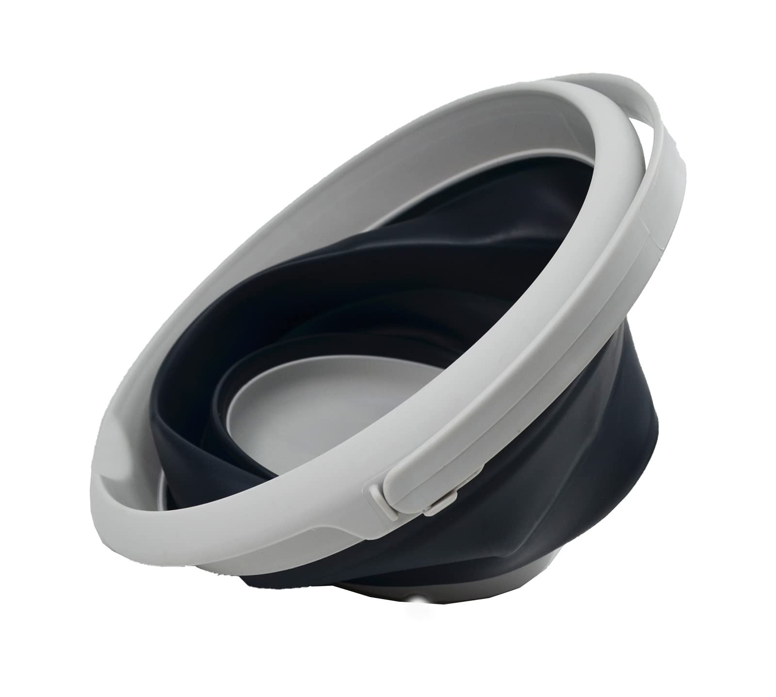 - Space saving with Expanded size: 11.8 (dia) x 8.9 (h) inches and its height just 2.1 inches after folds, save over 70% space when storage. Capacity: 8.5L (2.2 Gallon)