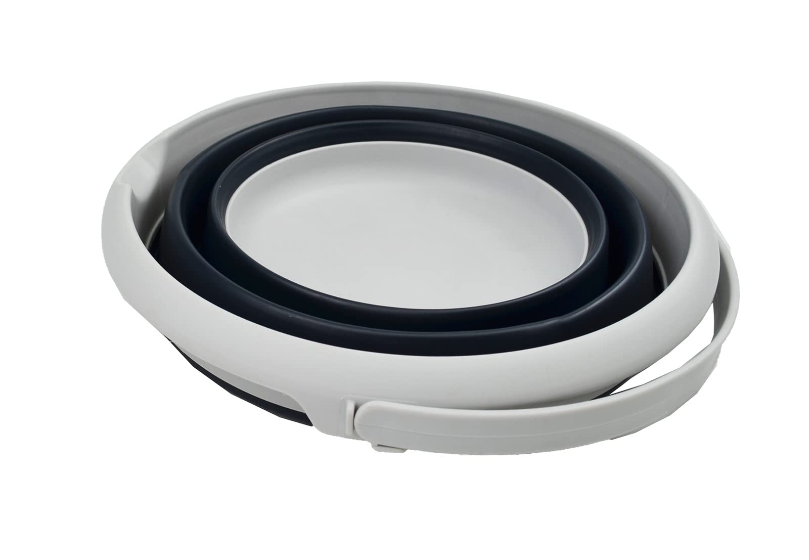 SAMMART Collapsible Plastic Bucket - Foldable Tub - Portable Fishing Water Pail - Space Saving Outdoor Waterpot (Grey/Slate Grey, 8.5L Round)