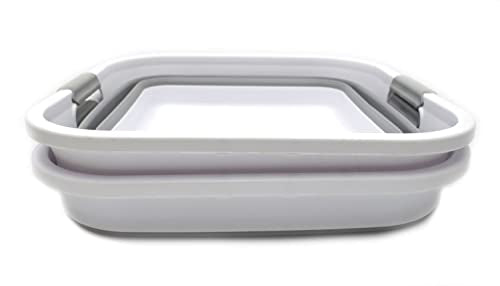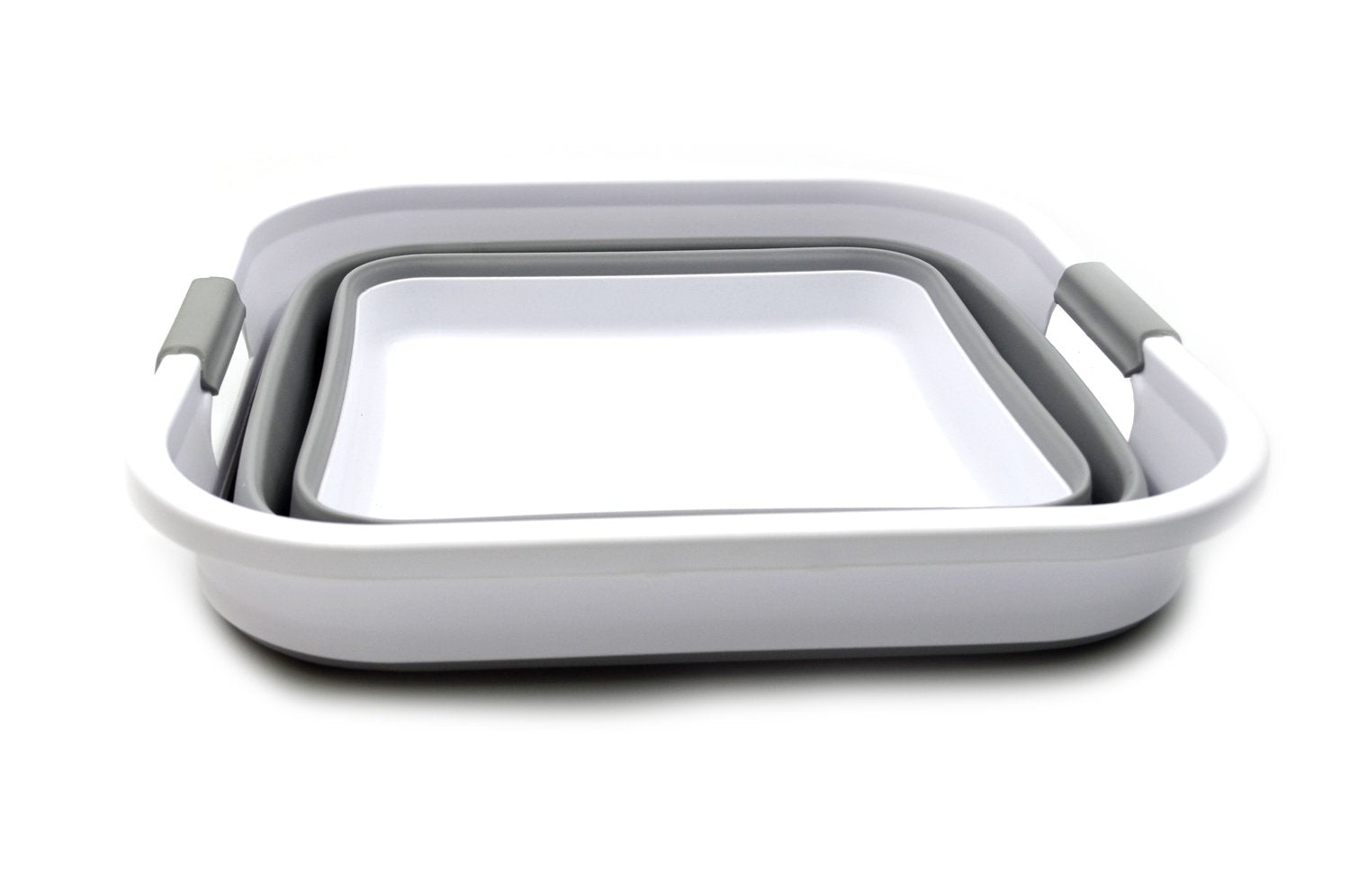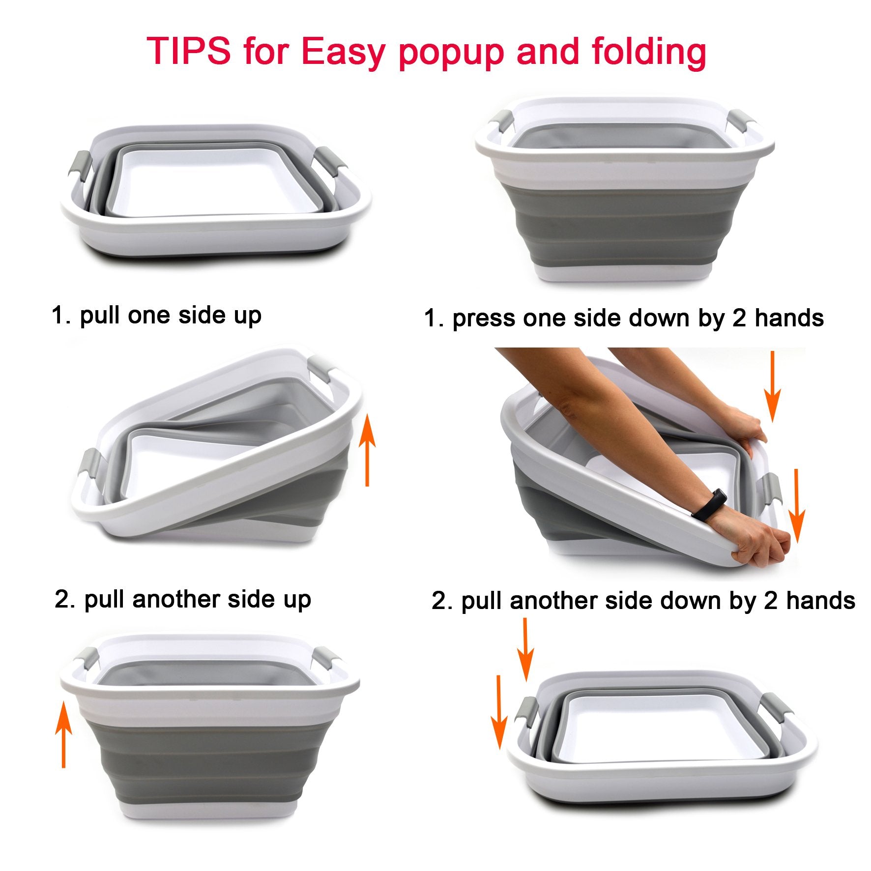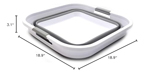 Details: **Set of 2 Collapsible TPE/PP Square Tub **Brand: SAMMART **Material: TPE & PP **Expanded size: 18.9x18.9x10.5inches **Collapsed size: 18.9x18.9x3.1inches **Capacity: full: 31L (8.18gallons) or hold 25L (6.6gallon) water
