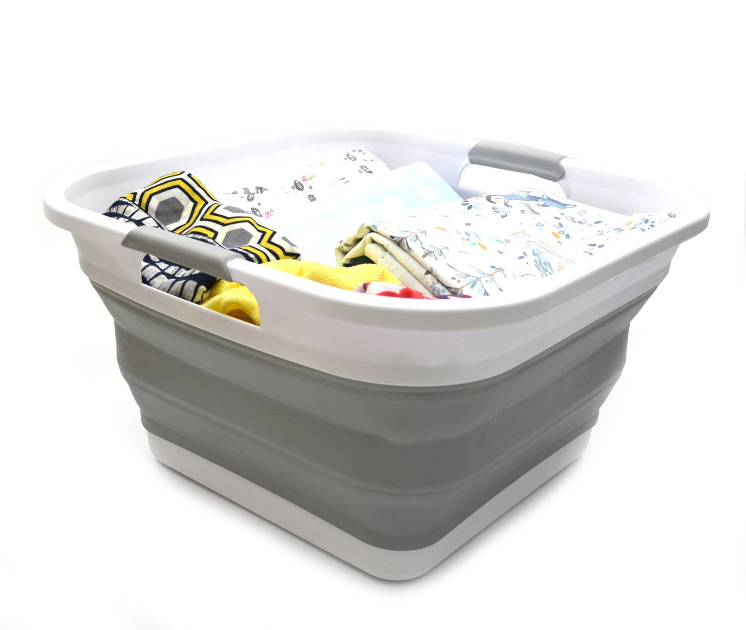 SAMMART Collapsible Plastic Laundry Basket - Square Tub/Basket - Foldable Storage Container/Organizer - Portable Washing Tub - Space Saving Laundry Hamper
