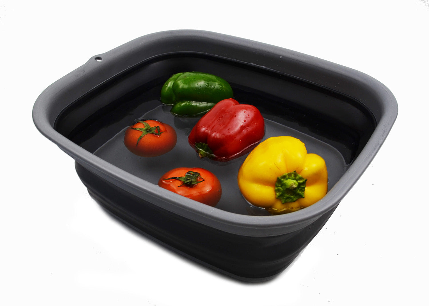 Details: **Collapsible TPE/PP Rectangular Tub **Brand: SAMMART **Material: TPE & PP **Expanded size: 13 x 11.4 x 5.75(h) inches/ 15.3 x 11.3 x 5.6(h) inches **Collapsed size: 13 x 11.4 x 1.6 inches/ 15.3 x 11.3 x 1.6(h) inches **Capacity: 7.7L (2 Gallon)/ 9.45L (2.5 Gallon)