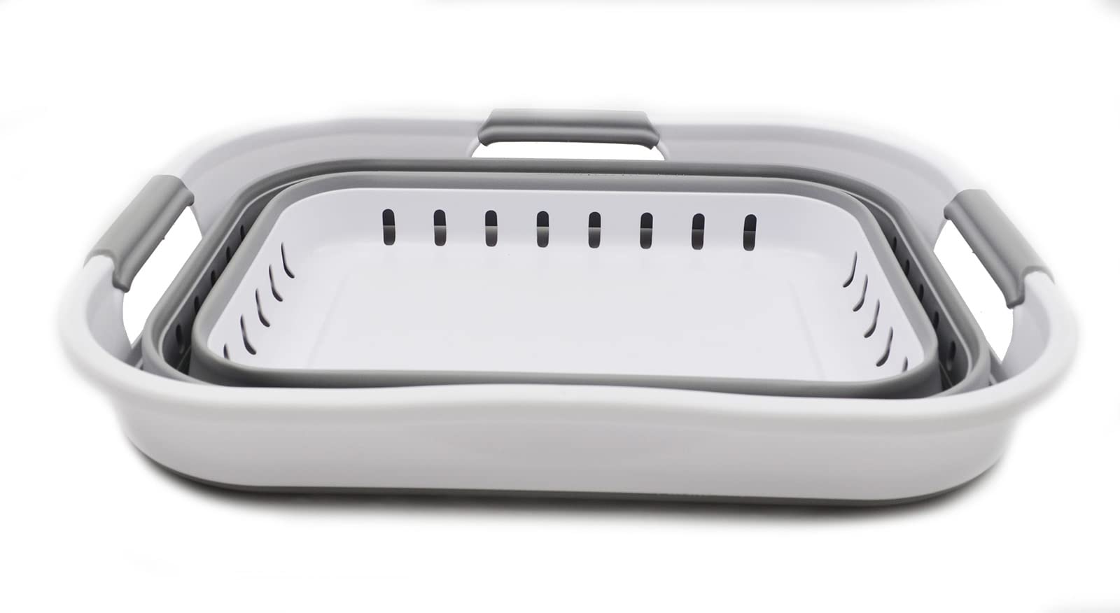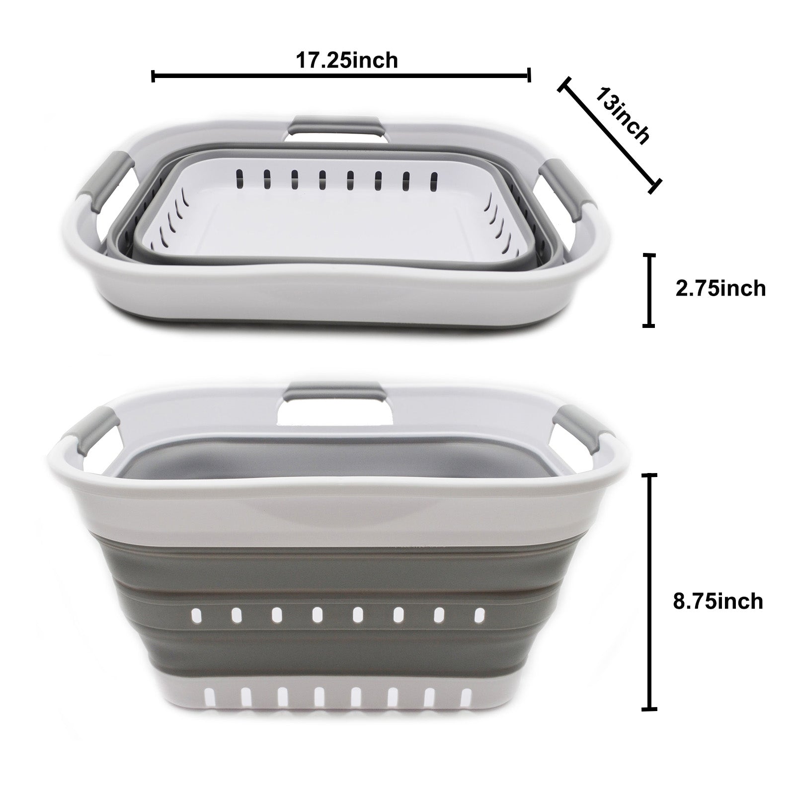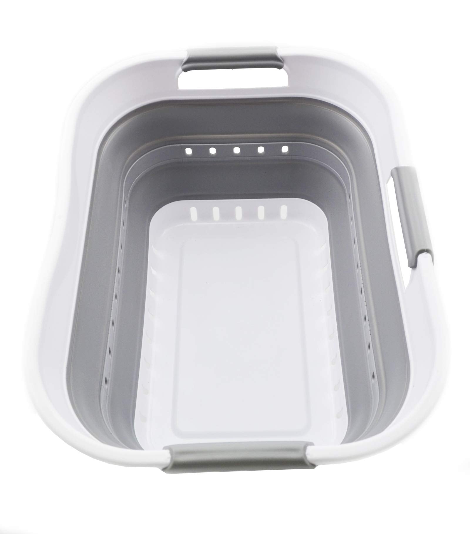 SAMMART Collpasible Laundry Basket (19L Collapsible Laundry Basket with Holes (White/Grey))