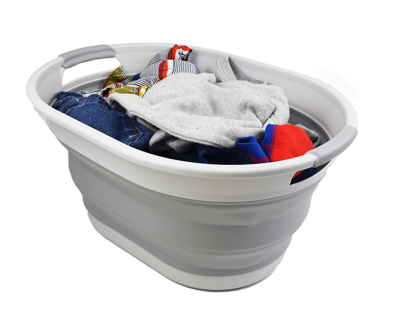 SAMMART Collpasible Laundry Basket (28L Collapsible Laundry Basket (Grey))