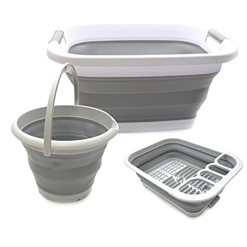 SAMMART COMBO 001 Collapsible Laundry Basket & Dish Drainer & Bucket - Perfect Outdoor & Picnic - Space Saving Storage Container