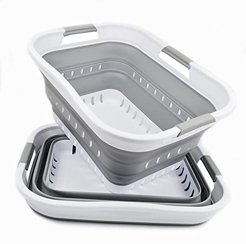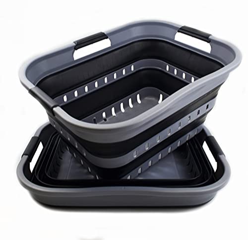 SAMMART Set of 2-30L (8 gallon) Collapsible Plastic Laundry Basket - Foldable Pop Up Storage Container/Organizer - Portable Washing Tub - Space Saving Hamper/Basket