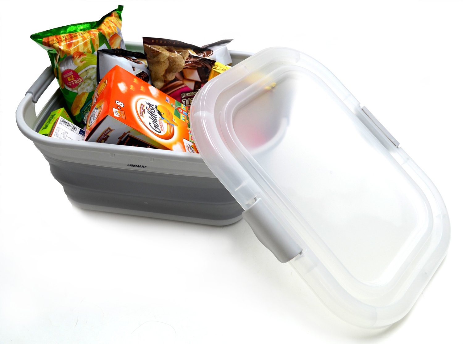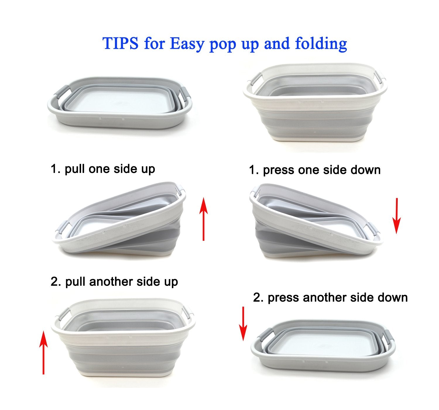Details: **Set of 2 Collapsible TPE Storage box **Brand: SAMMART **Material: TPE & PP **Expanded size: 18.5 x 14.8 x 8.25 inches **Collapsed size: 18.5 x 14.8 x 3 inches
