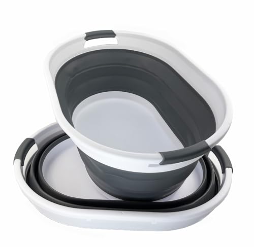 SAMMART Set of 2 Collapsible Plastic Oval Laundry Basket - Foldable Pop Up Storage Container/Organizer - Portable Washing Tub - Space Saving Hamper
